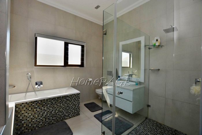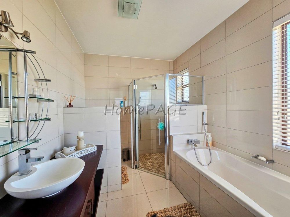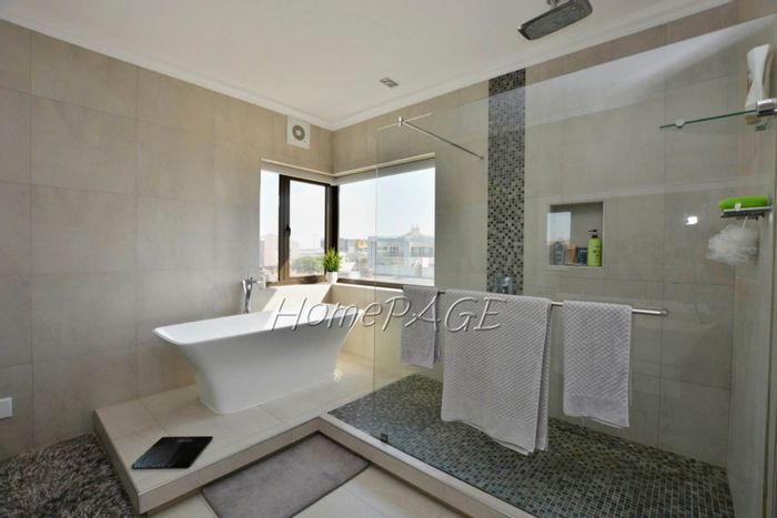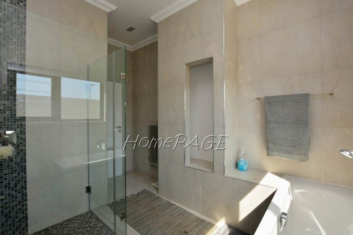 * Bedroom is semi-open plan with luxurious bathroom: Double basins, double shower, bath and toilet