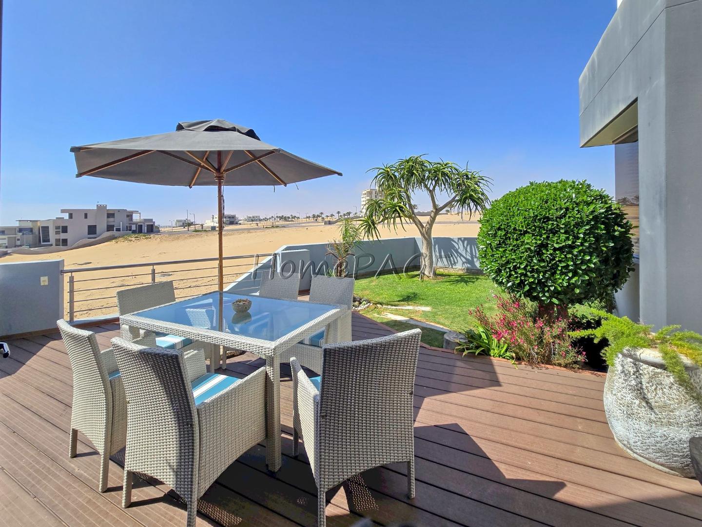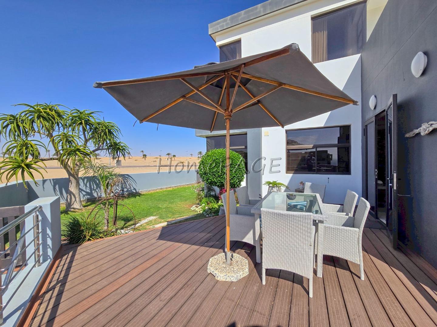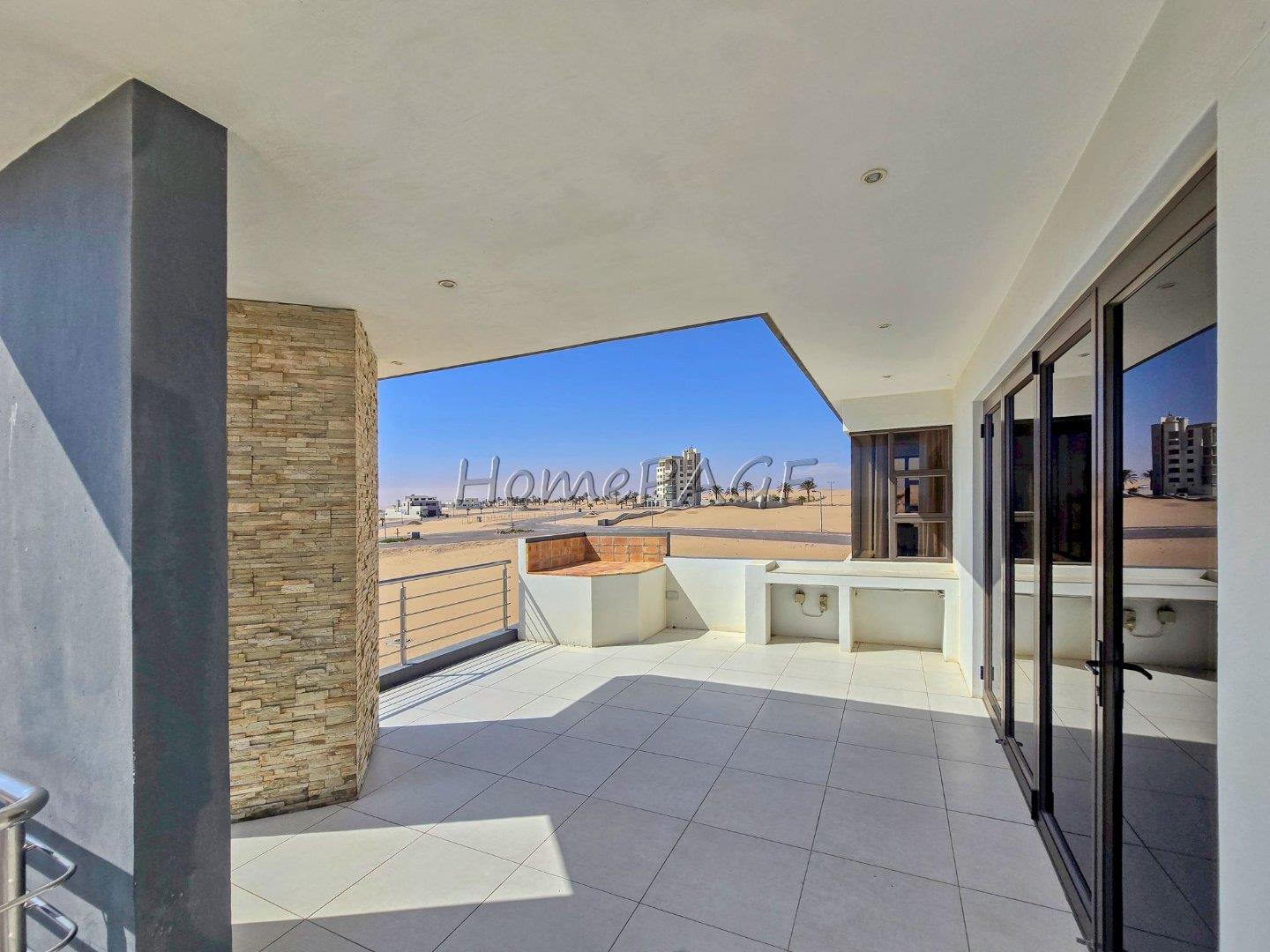 * The living area is wrapped around by a large balcony, with an open BBQ
