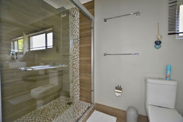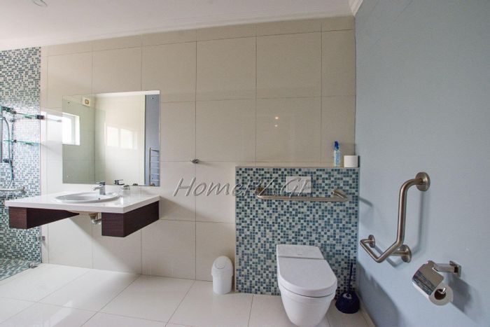 Five-bedroom home with sea views, multiple living areas, and extensive security features in a quiet cul-de-sac.