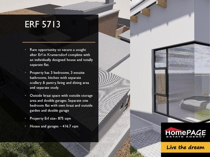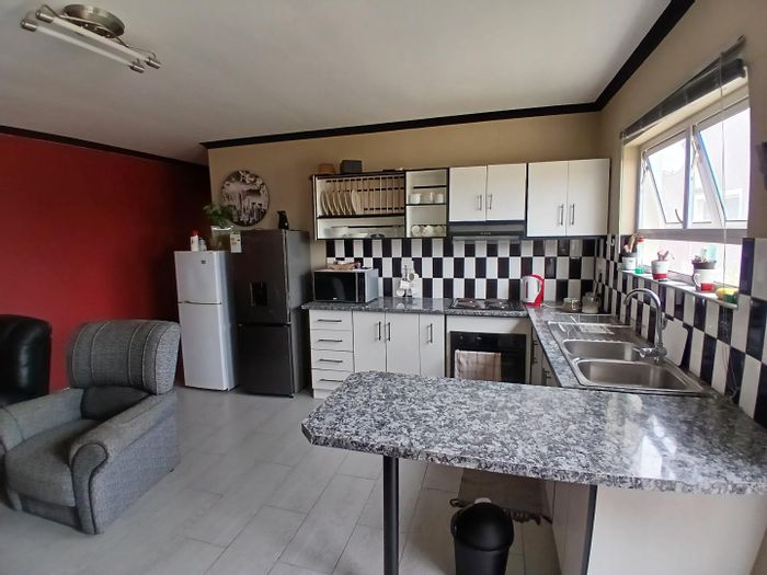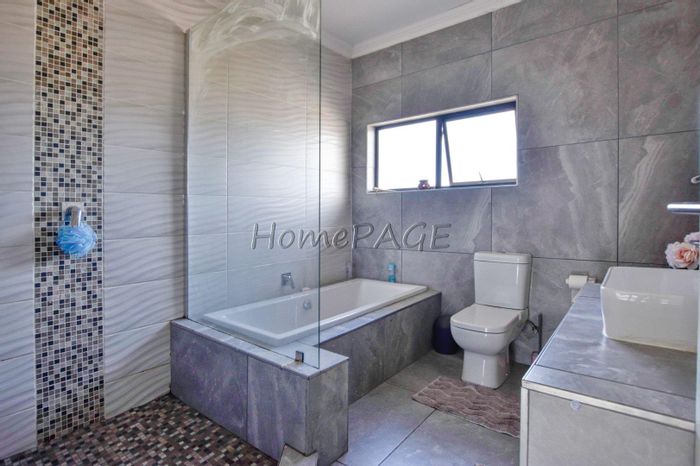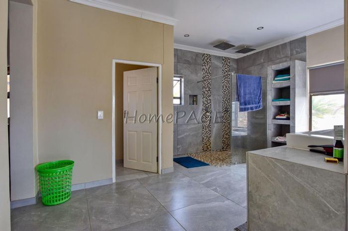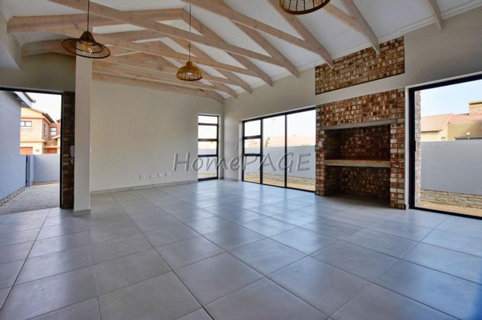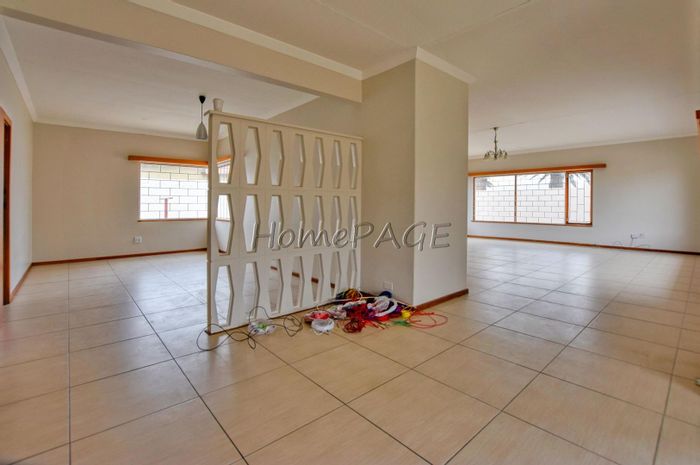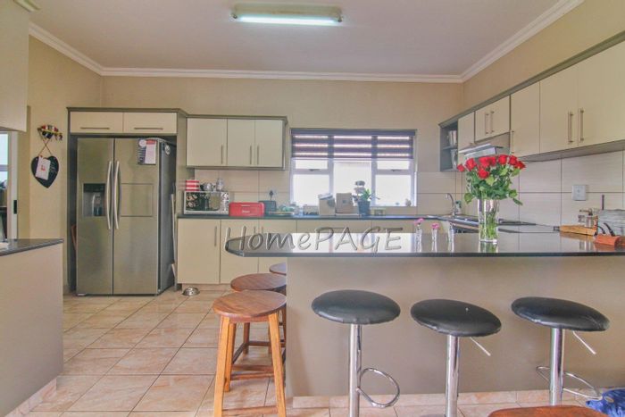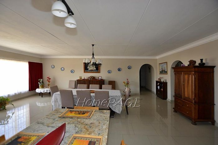 This property features a 3-bedroom home with a flat, double garage, and spacious living areas, priced at N$1,580,000.
