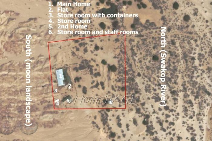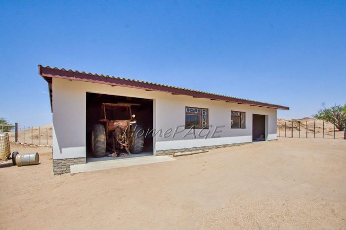 5.9-hectare plot with multiple accommodations, strong borehole, and extensive facilities, ideal for a lodge, priced at N$13,500,000.