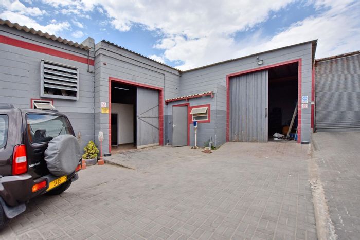 Warehouse for sale: 81m², 2 small lofts, toilet, kitchenette, N$525,000 (excl. VAT), monthly levy N$758, dedicated parking.