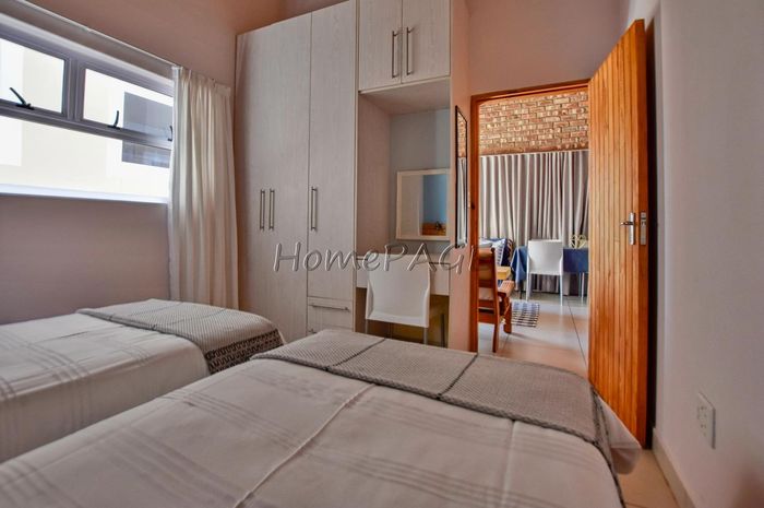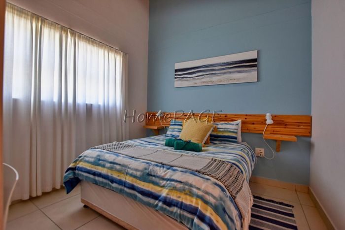 Neat unit with sea views, two bedrooms, indoor BBQ, secure garage access, and 109m2 living space. Price: N$1,250,000.