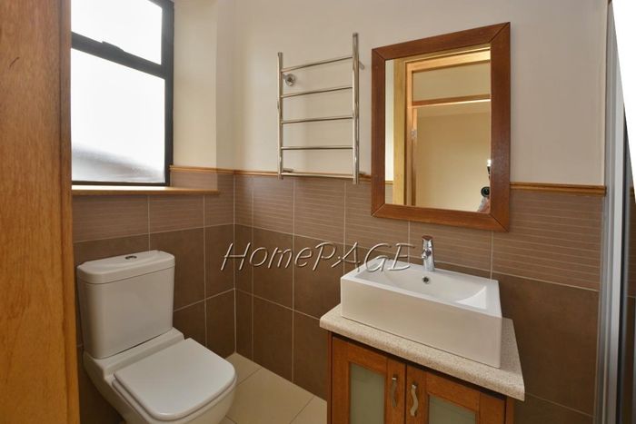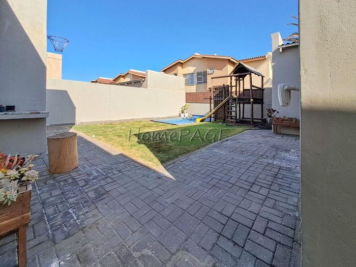 First floor apartment with 2 bedrooms, 2 bathrooms, and a single garage. Total size 112m². Price: N$1,425,000.