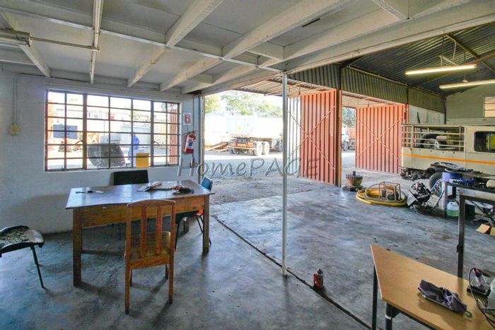 Two erven totaling 4024m² with 1113m² buildings, including workshops, offices, and storage. Price: N$7,350,000 (VAT exclusive).