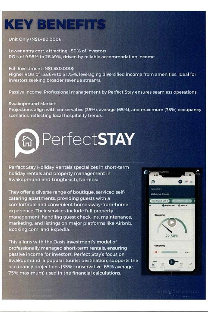 * Swakopmund has a vibrant tourism industry, with large demand for upmarket self catering accommodation