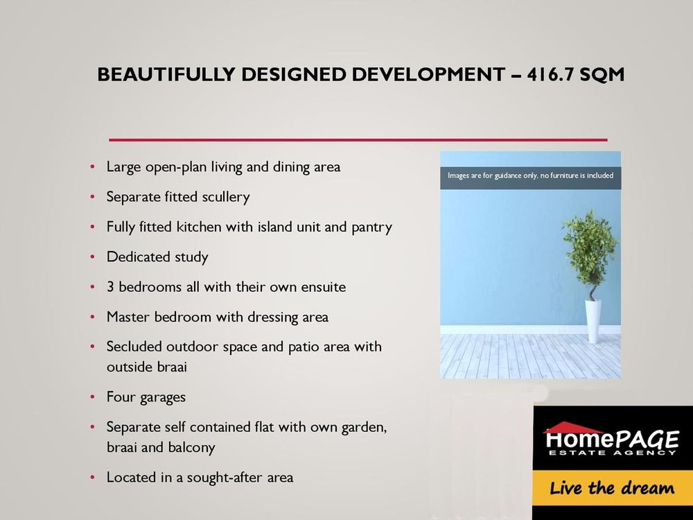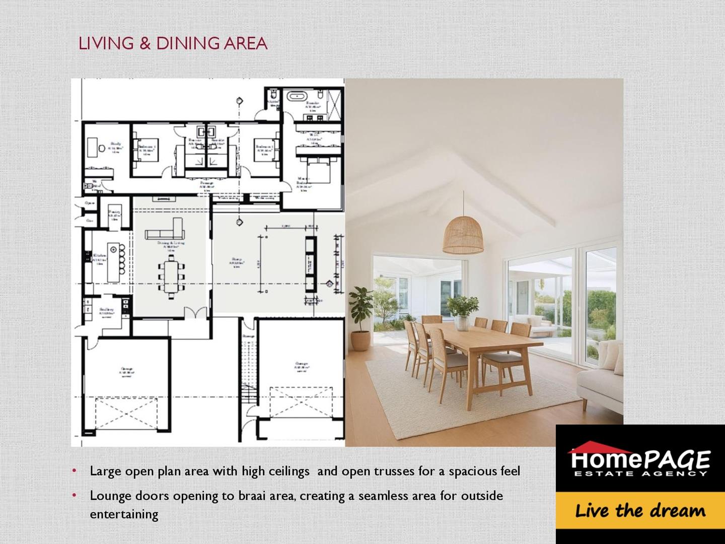 * Large living area, catering for lounge and dining room, open plan with kitchen