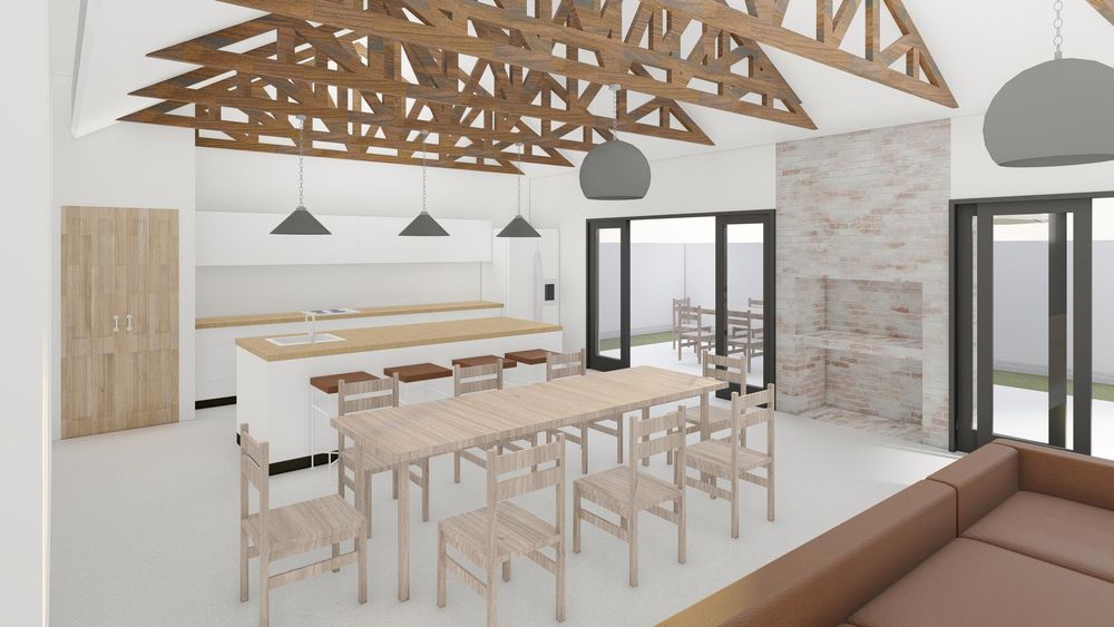 * Living area, catering for lounge/dining room, with indoor BBQ