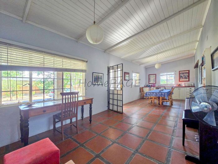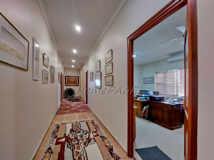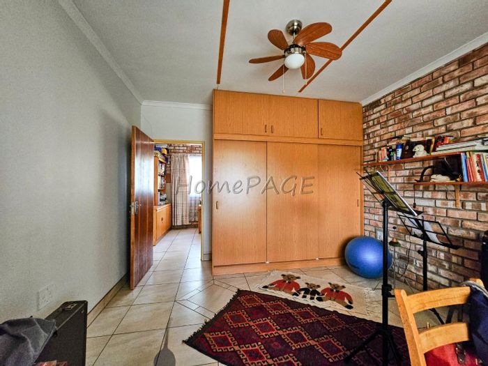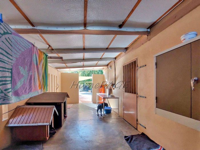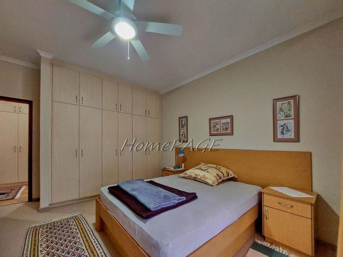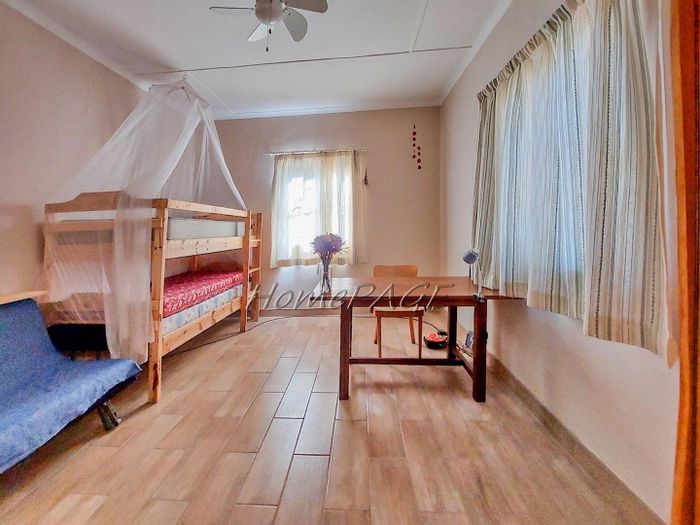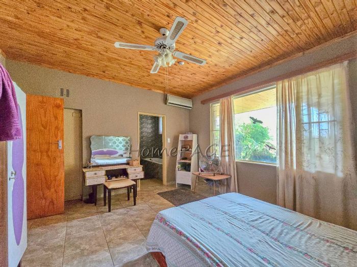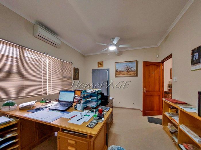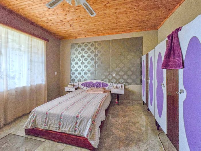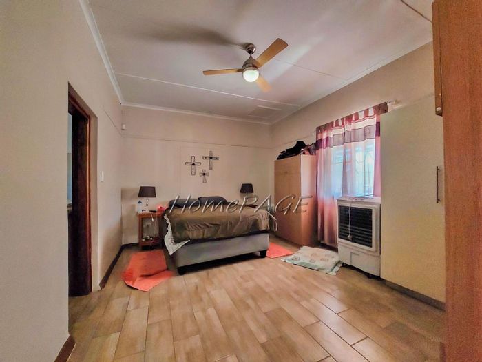 Spacious property with main home, two flats, outbuildings, large garden, solar system, and security features, priced at N$4,725,000.