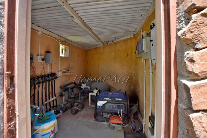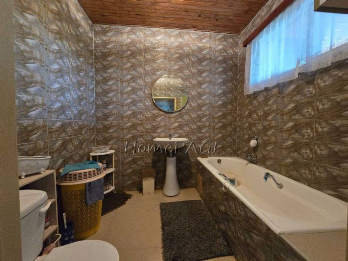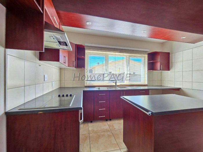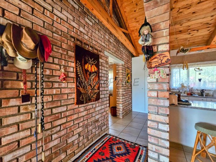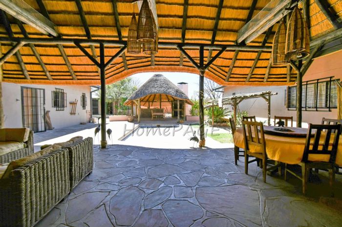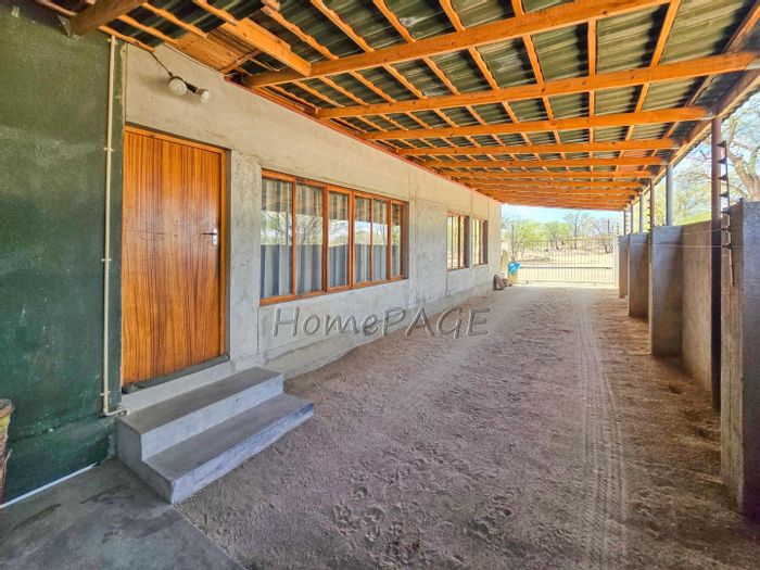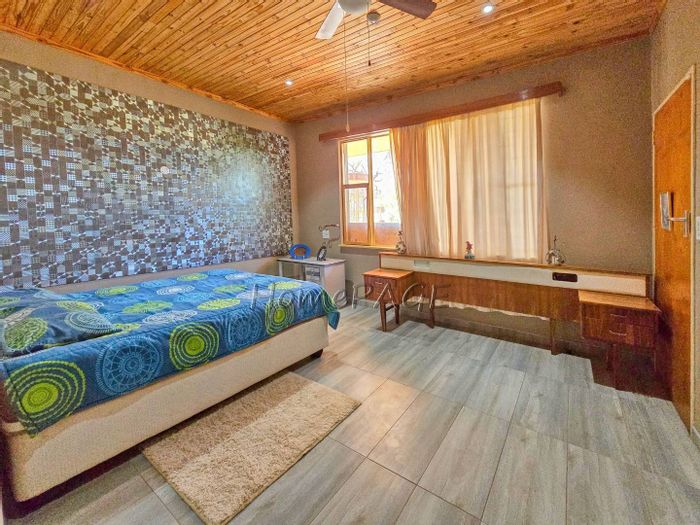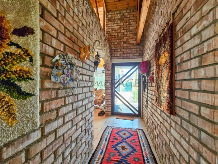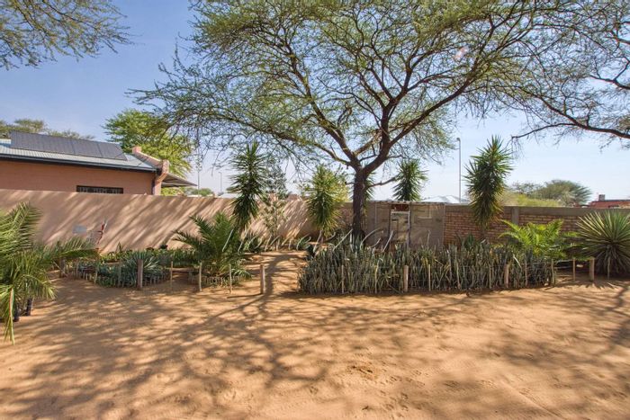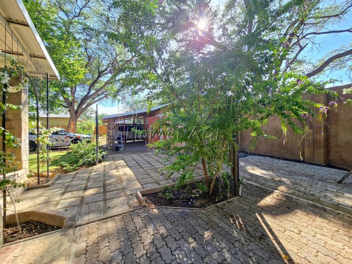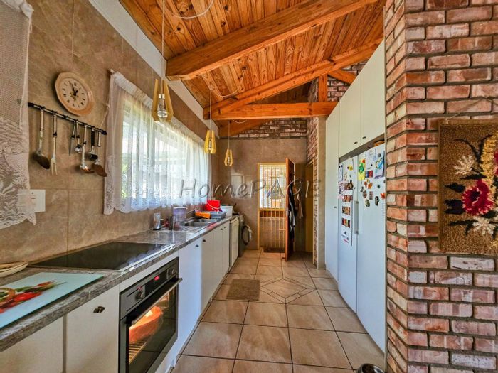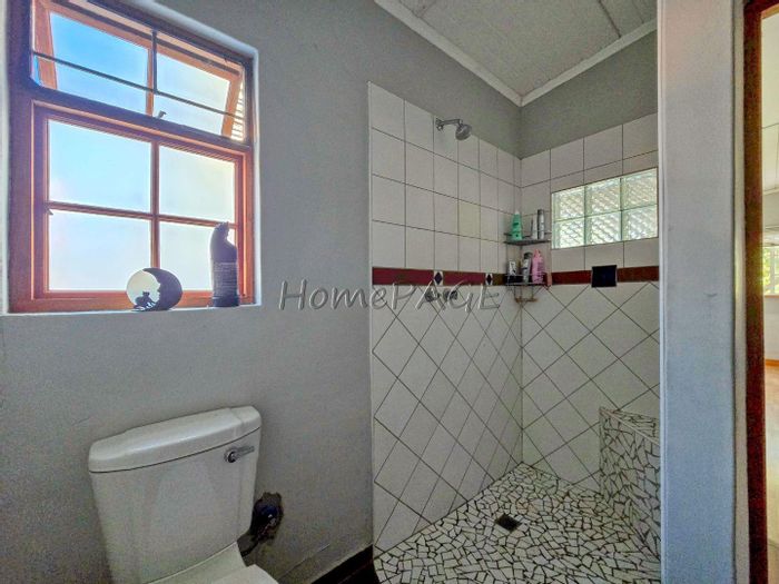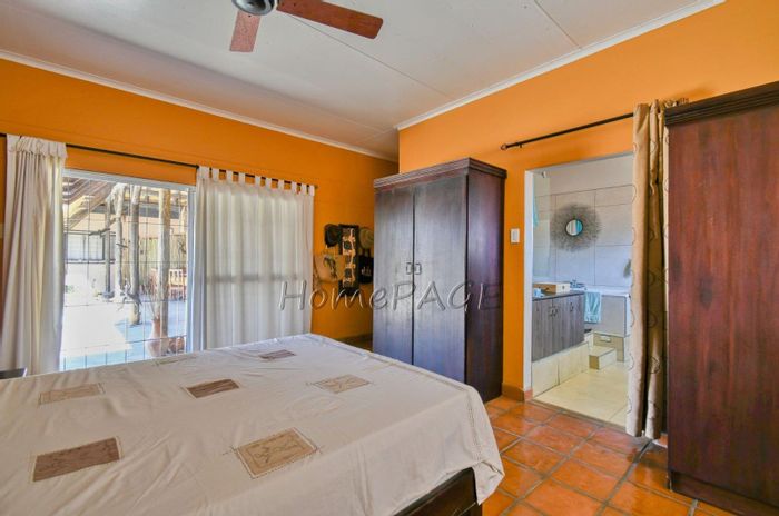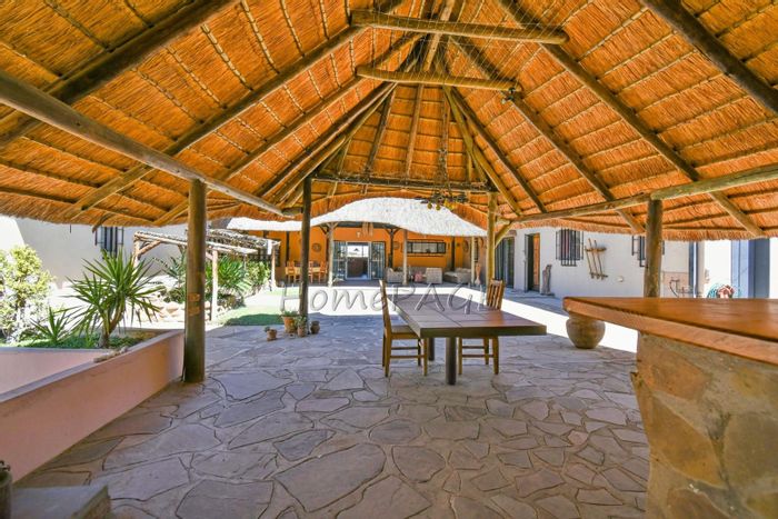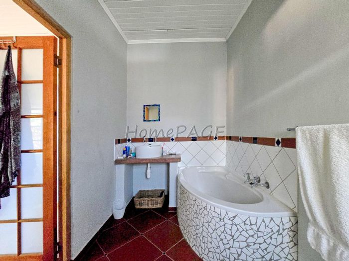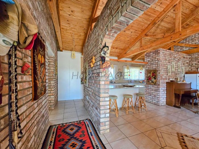 Rustic 3-bedroom home with modern amenities, solar power, security features, large garden, and pool, priced at N$3,150,000.