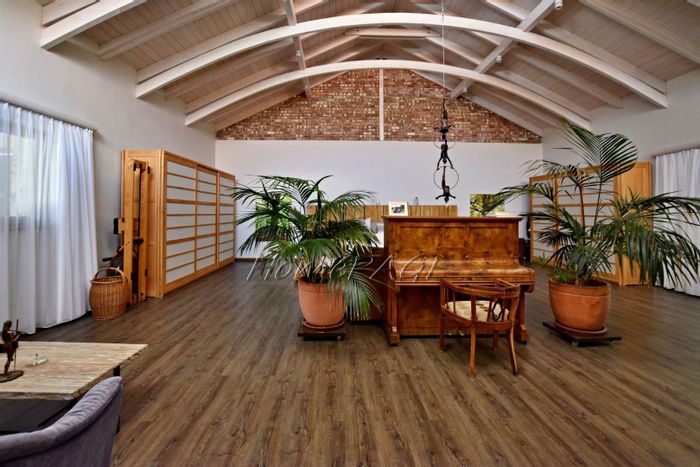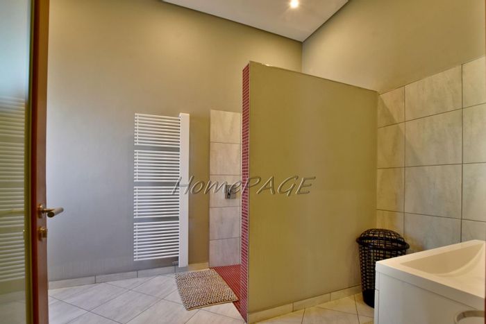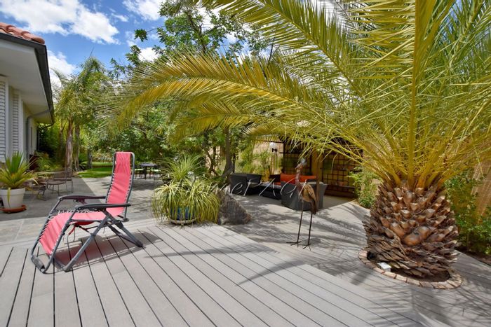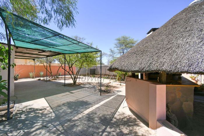 Luxurious home with modern technology, stunning garden, pool, high-end features, security, and ample parking, priced at N$8,755,000.