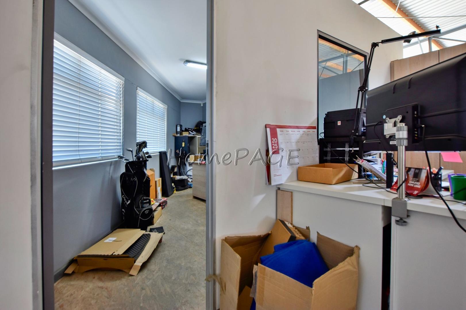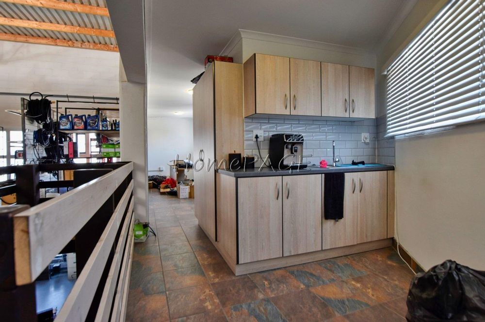 Upstairs: large open space storage unit as well as office with dry walls, kitchenette, toilet and heavy duty mezzanine (Lots of deck space)