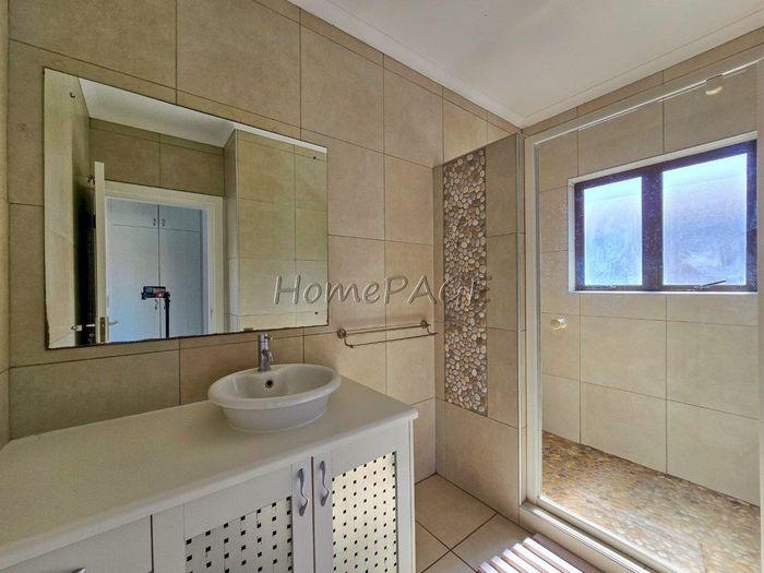 * Entertainment room has a built-in braai and stylish bar. This room opens to the pool area through stack doors