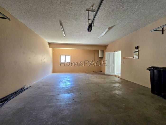 a 5 Bedroom, 3 bathroom house with garages for at least 5 cars.