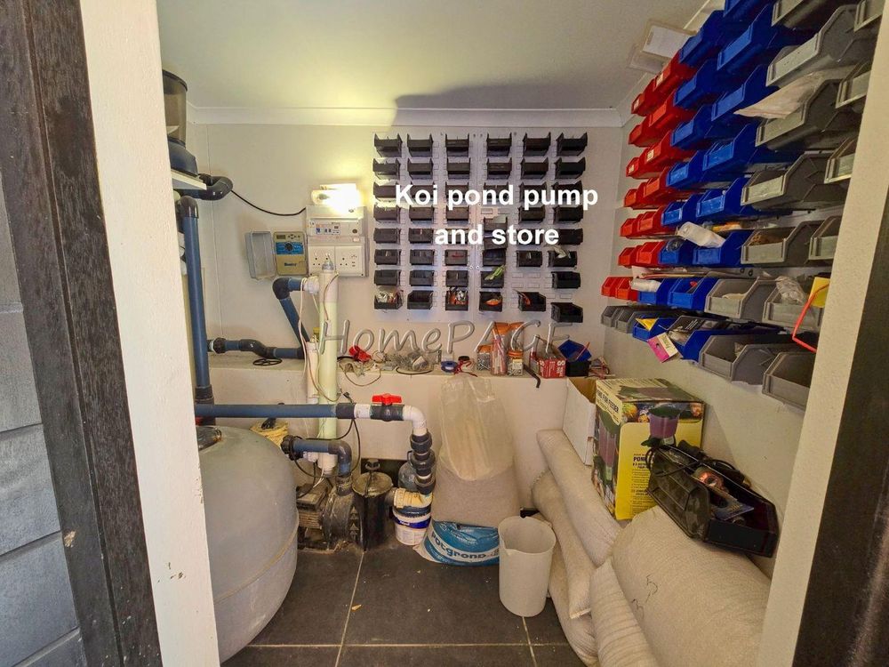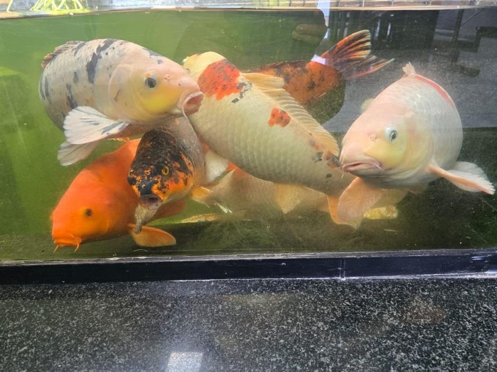 * Adjacent to reception, through a large window, is the Koi Pond visible, housing various large and small Koi