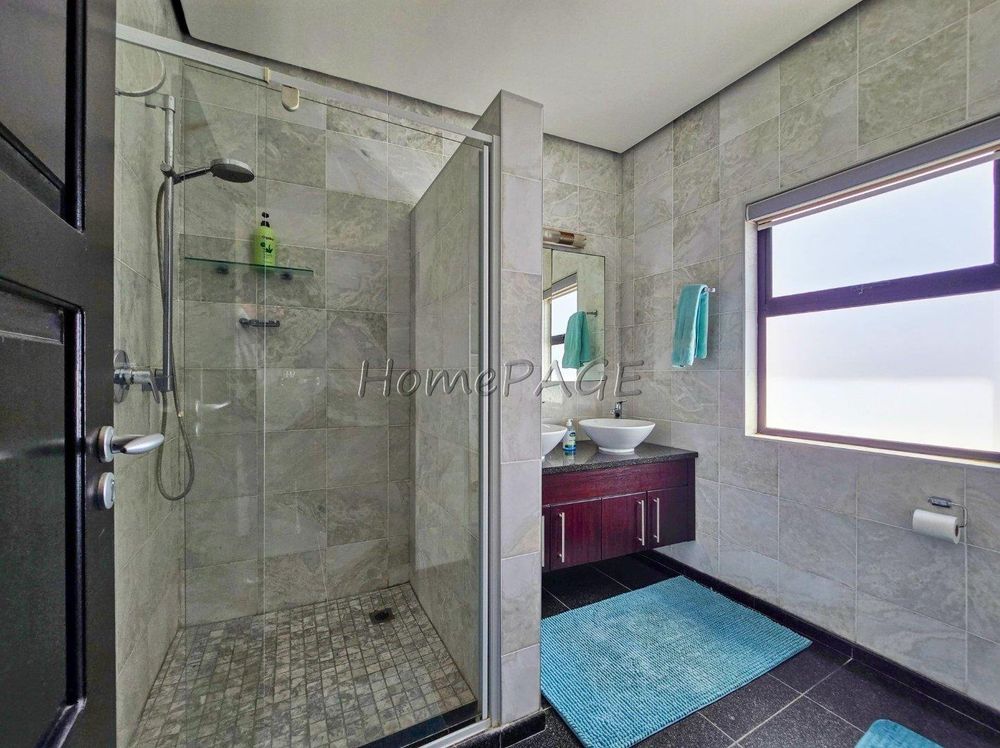 *** One bathroom with marble tiles, granite tops, shower, double basins, toilet