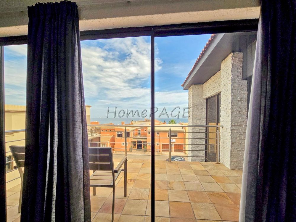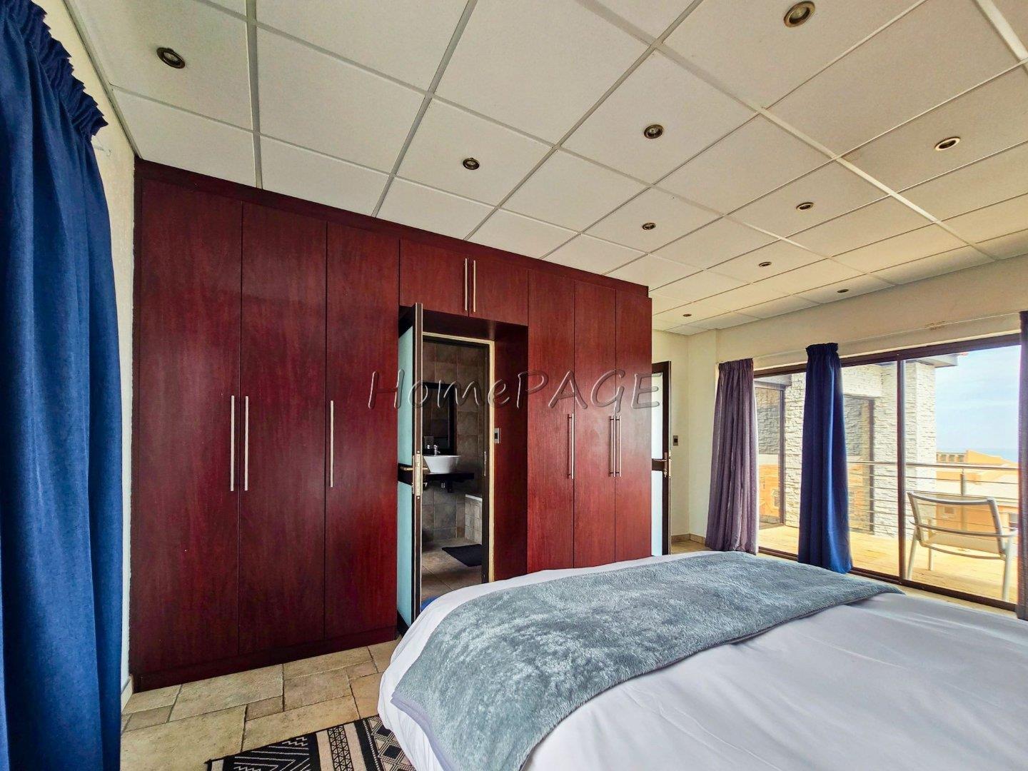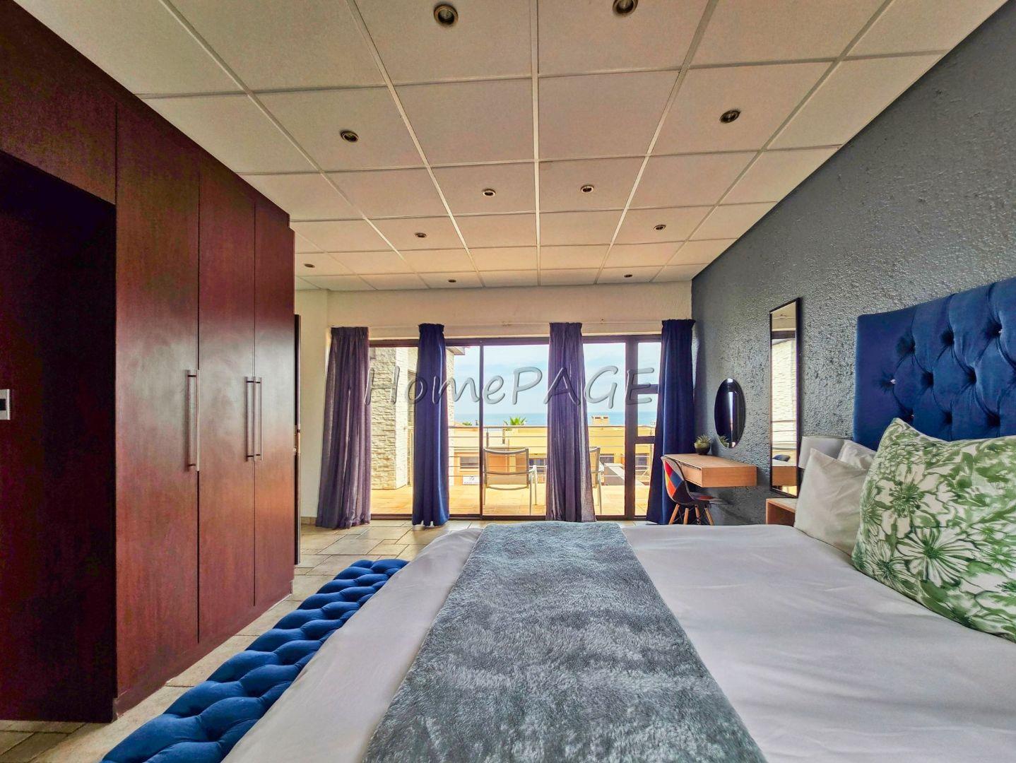 * Sliding door leading to open balcony with outdoor BBQ and sea views