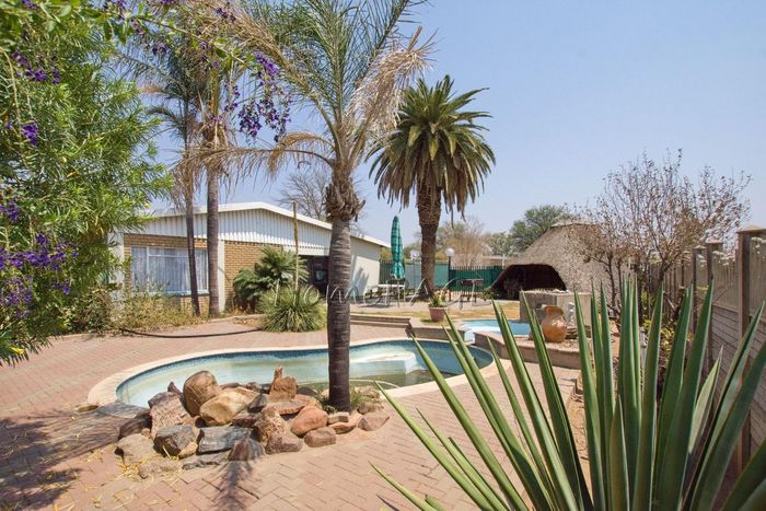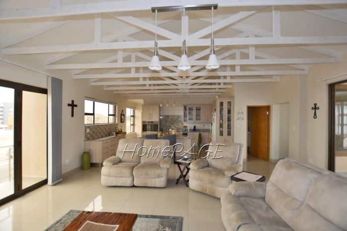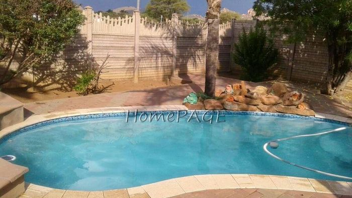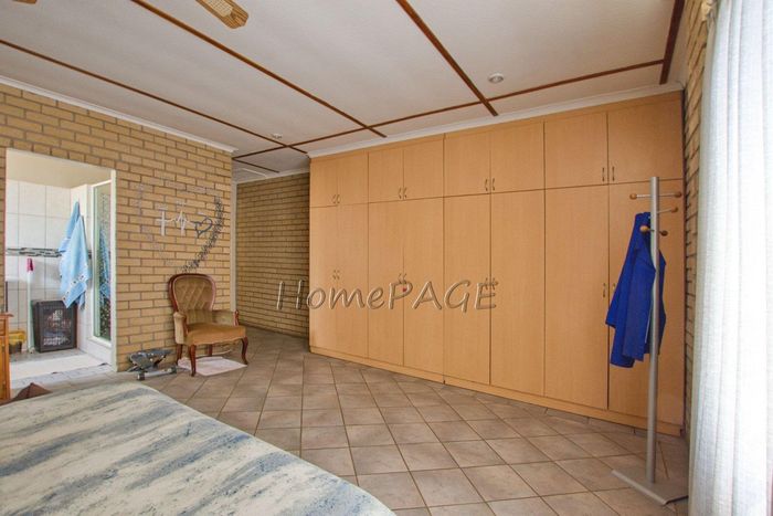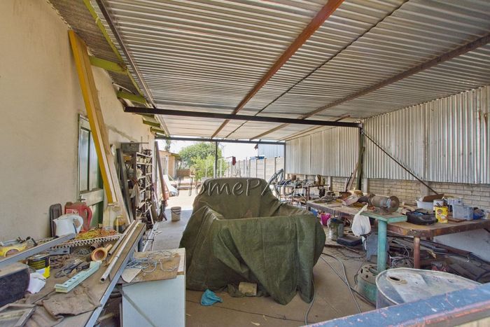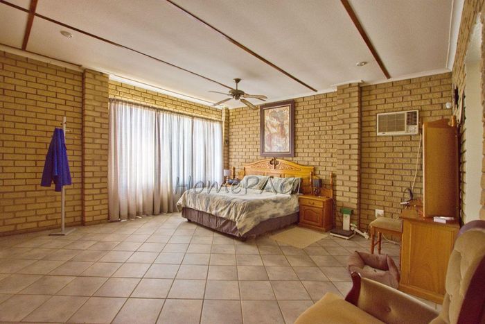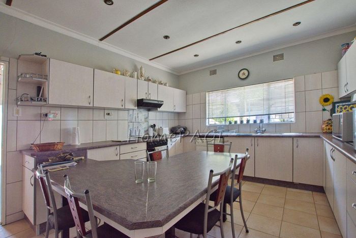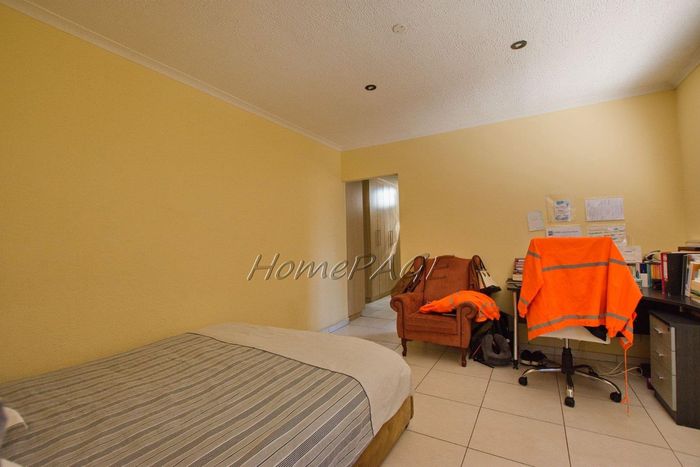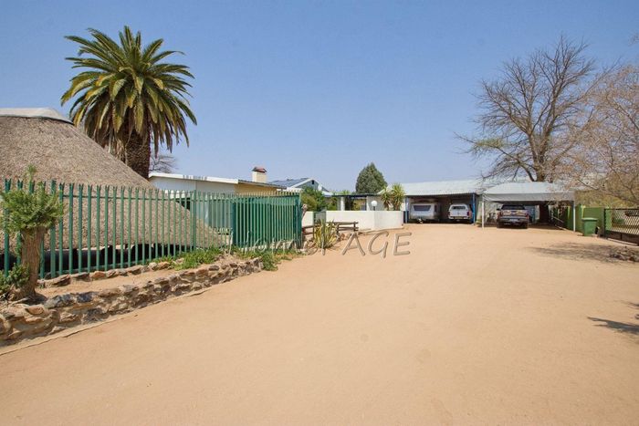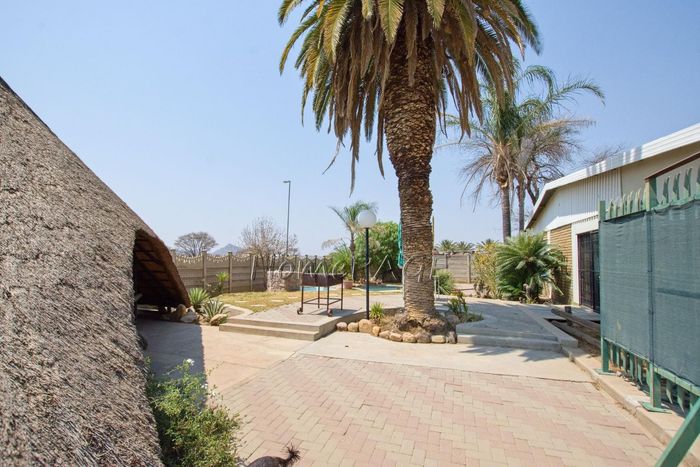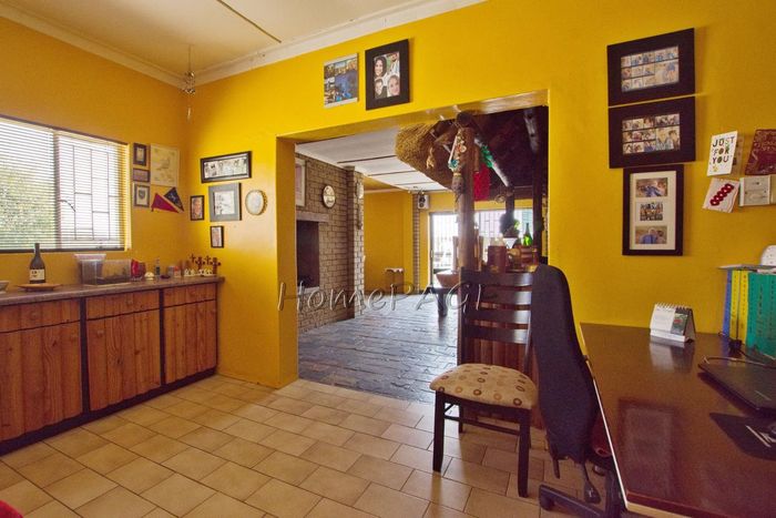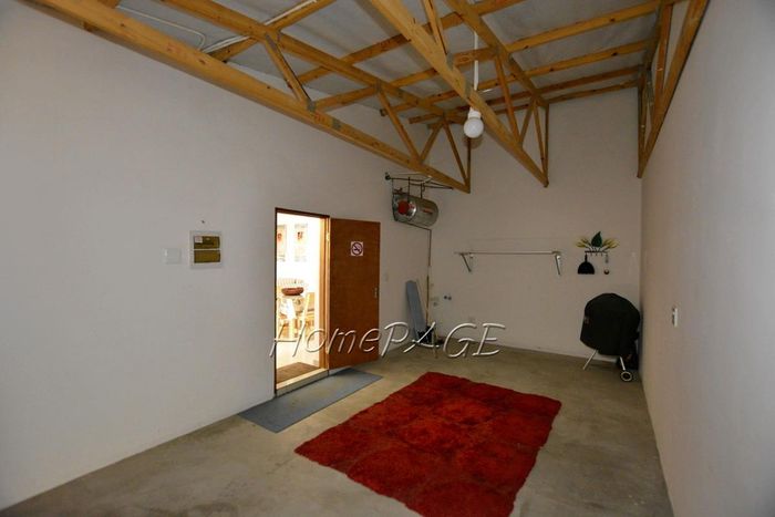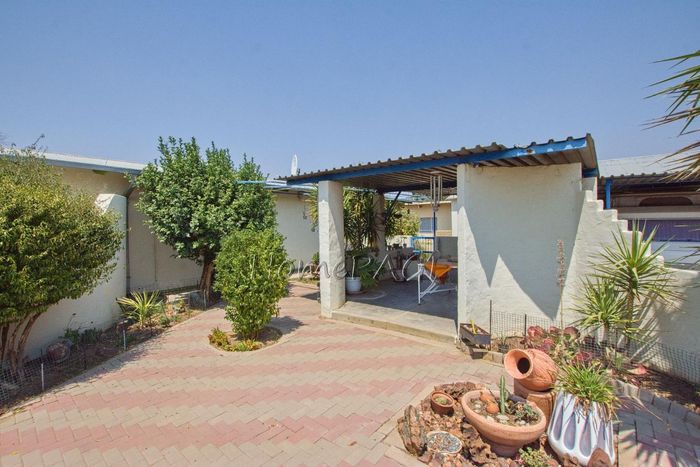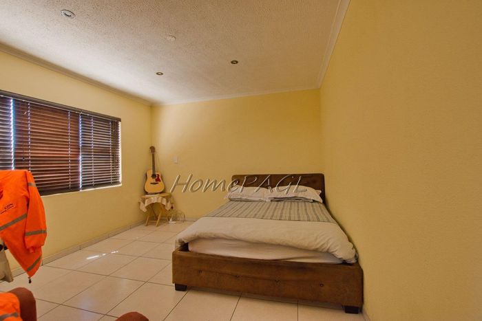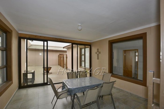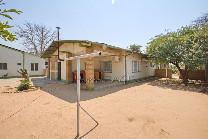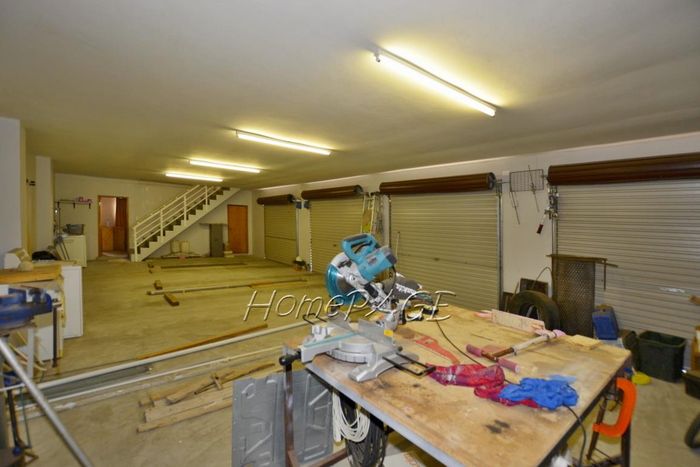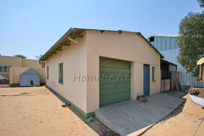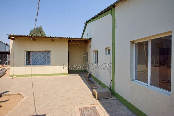 Spacious property with home, flat, workshops, warehouses, and office; ideal for business oversight. Includes pool, security features. Price: N$6,825,000.
