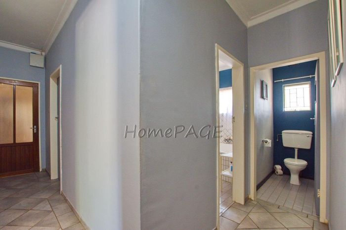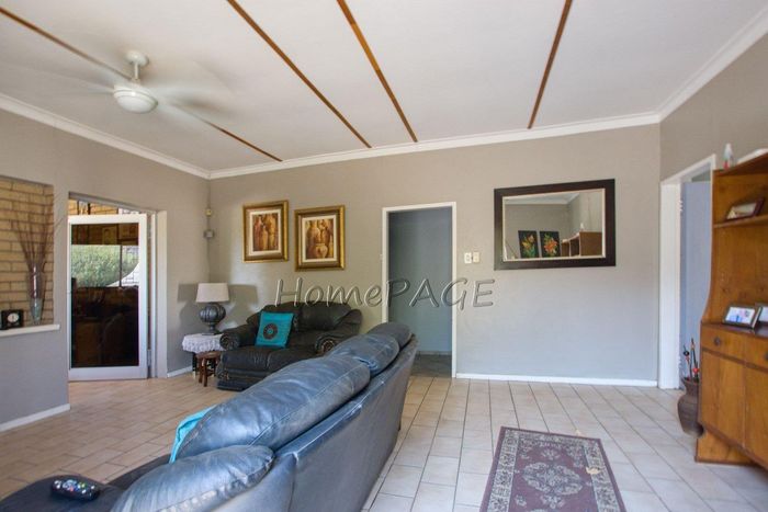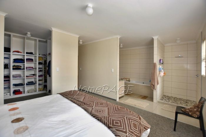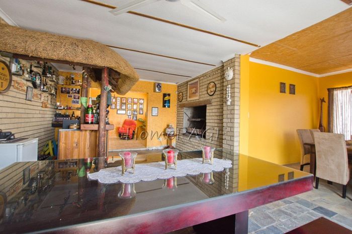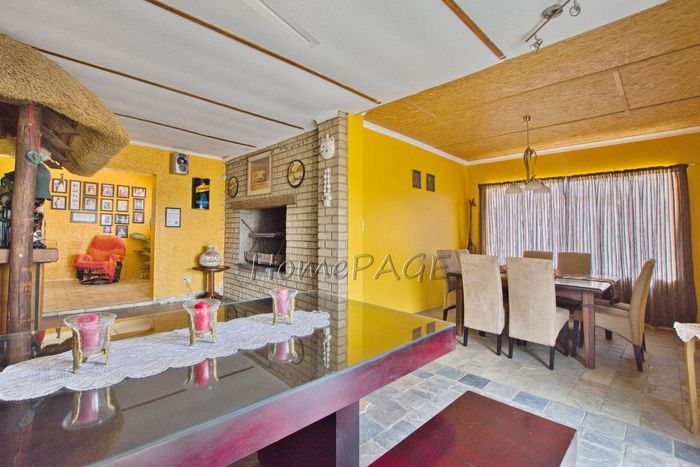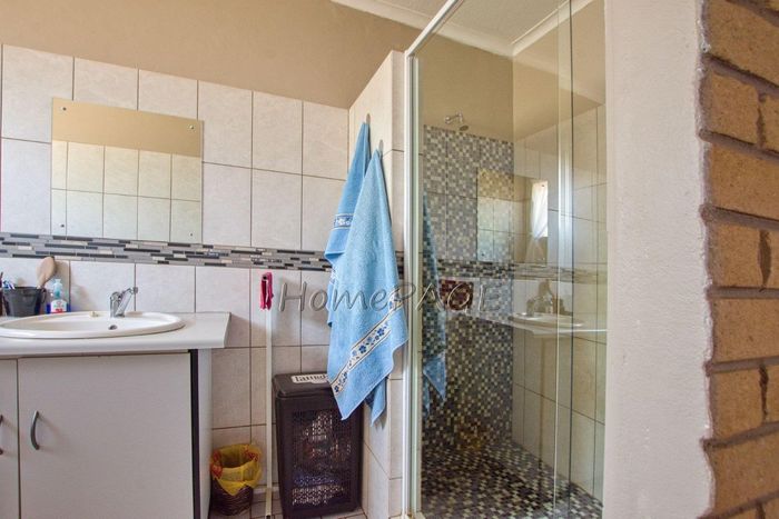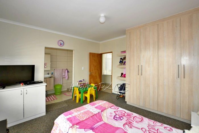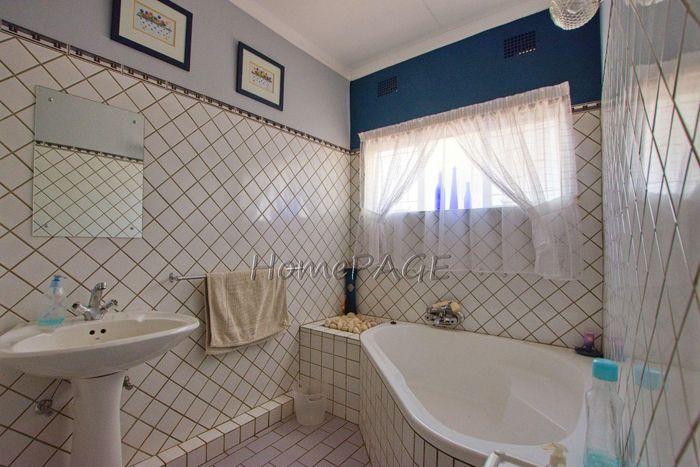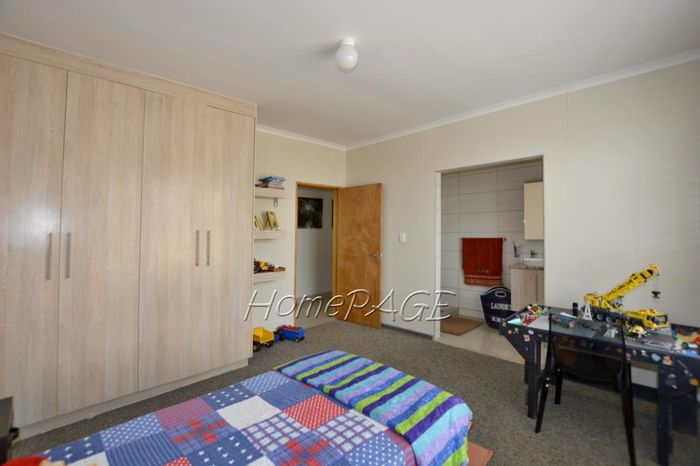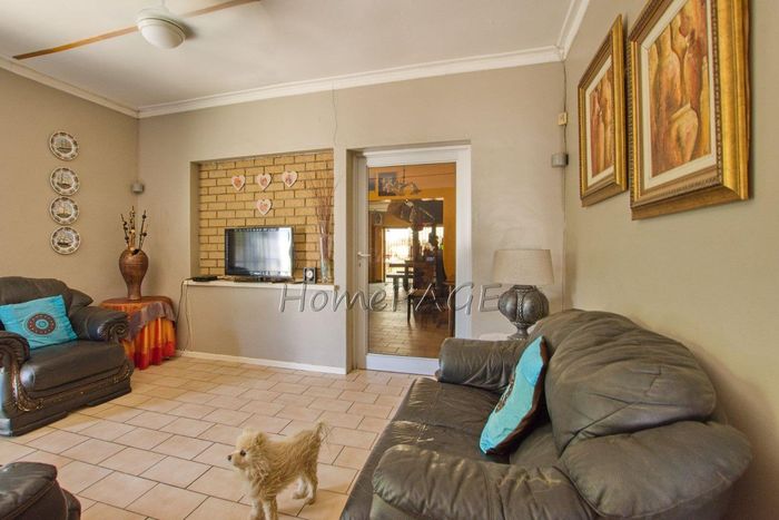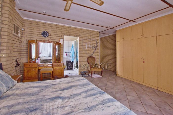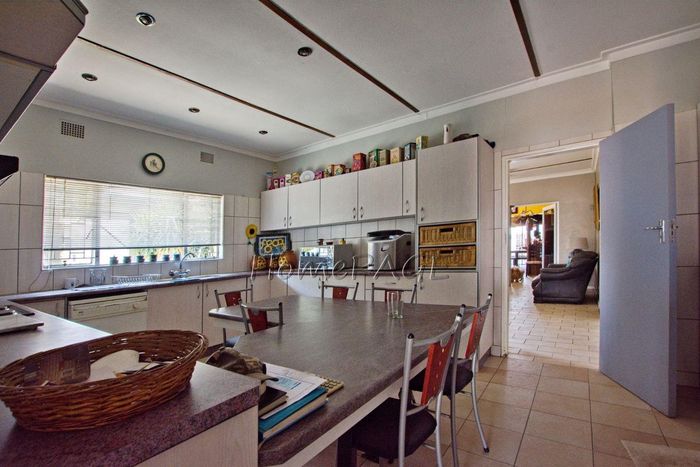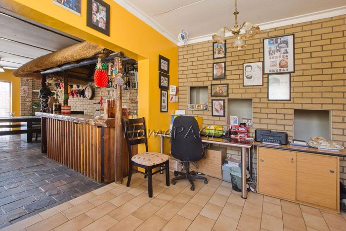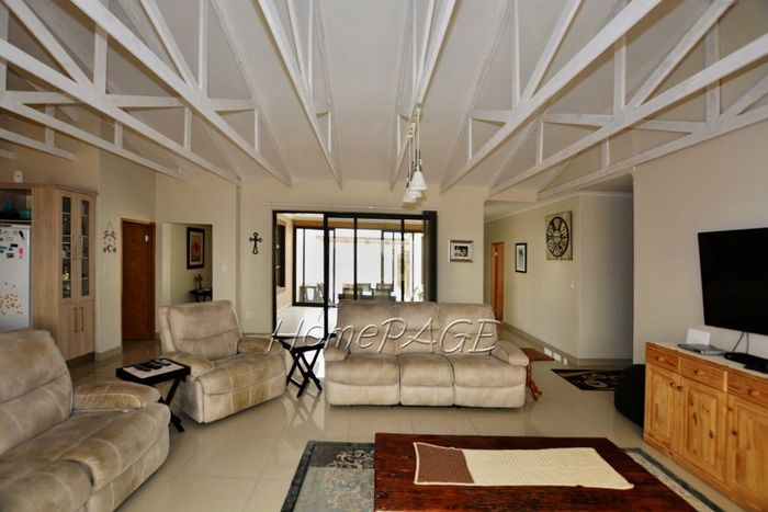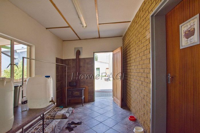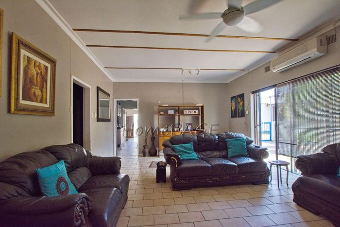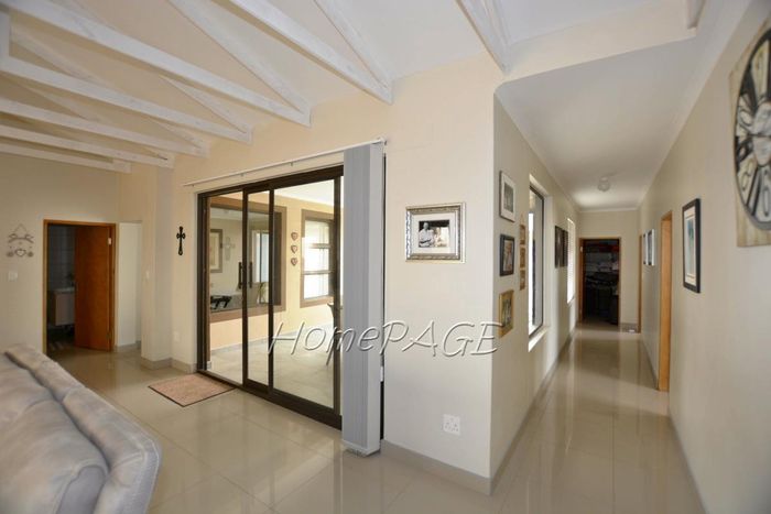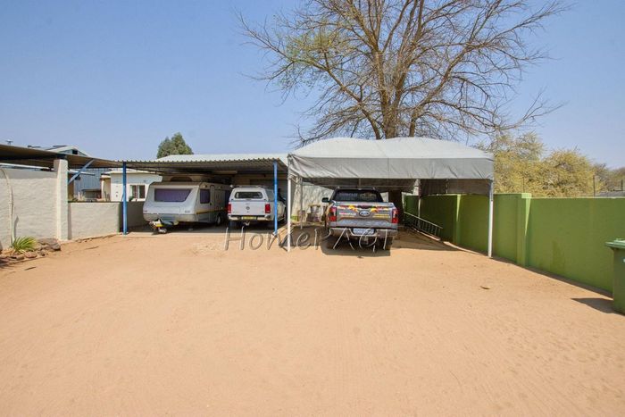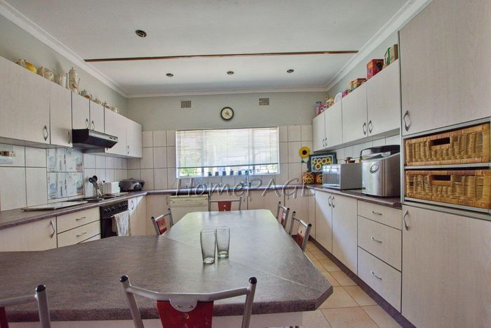 Spacious property with home, flat, workshops, warehouses, and office; ideal for business oversight. Includes pool, security features. Price: N$6,825,000.