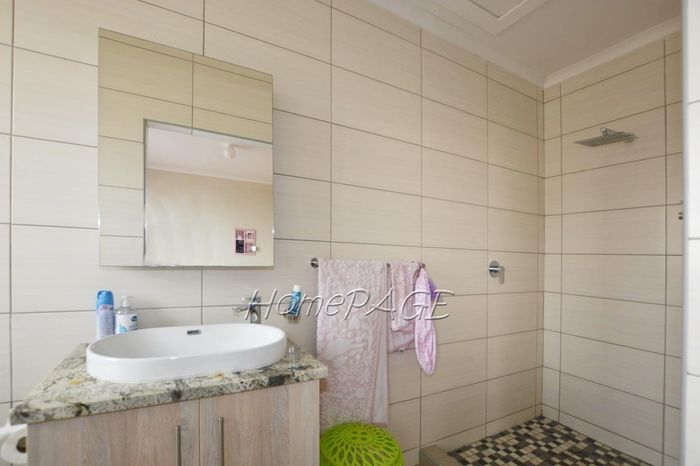 Double storey unit with 3 bedrooms, 2 bathrooms, and 2 garages; total size 182 m². Price: N$1,680,000 negotiable.
