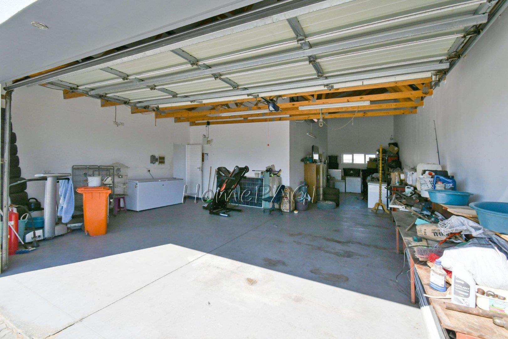 * Large double garage, 100m2, with parking for at least 3 cars, and space to use as workroom, or parking space for trailer