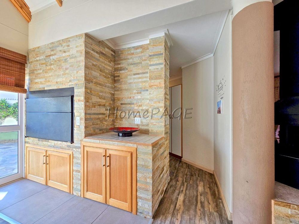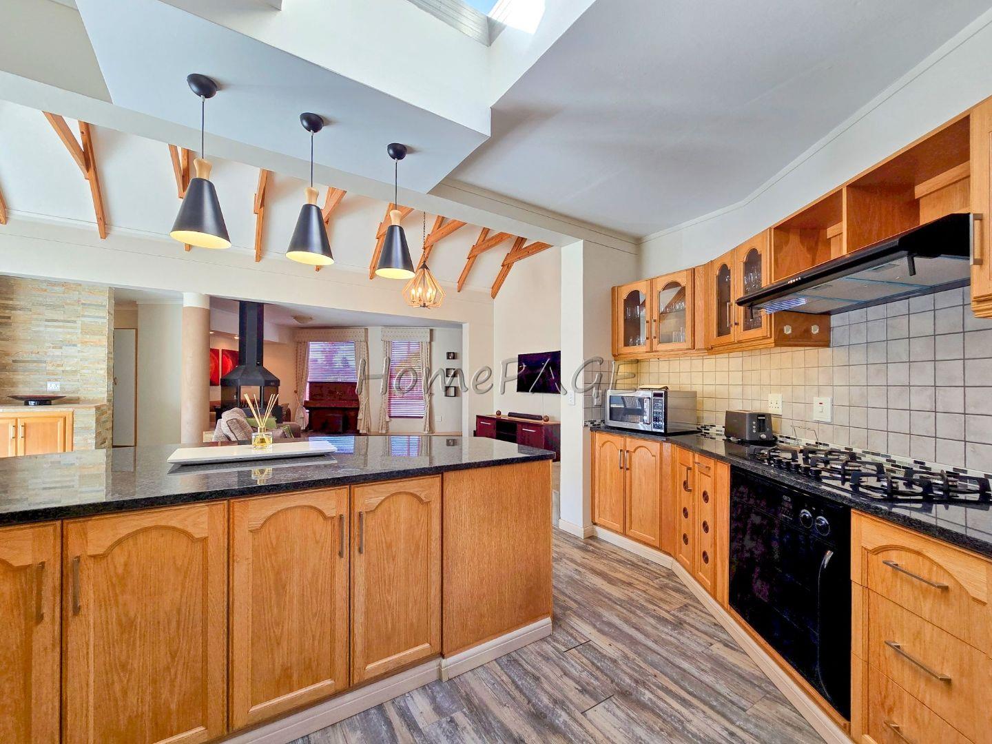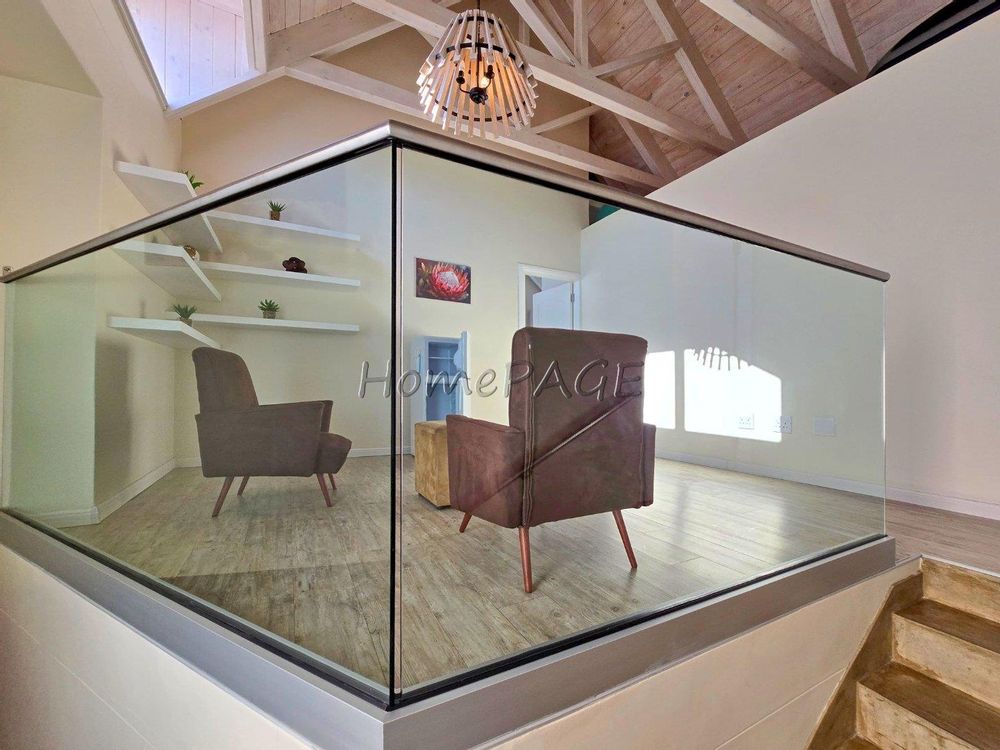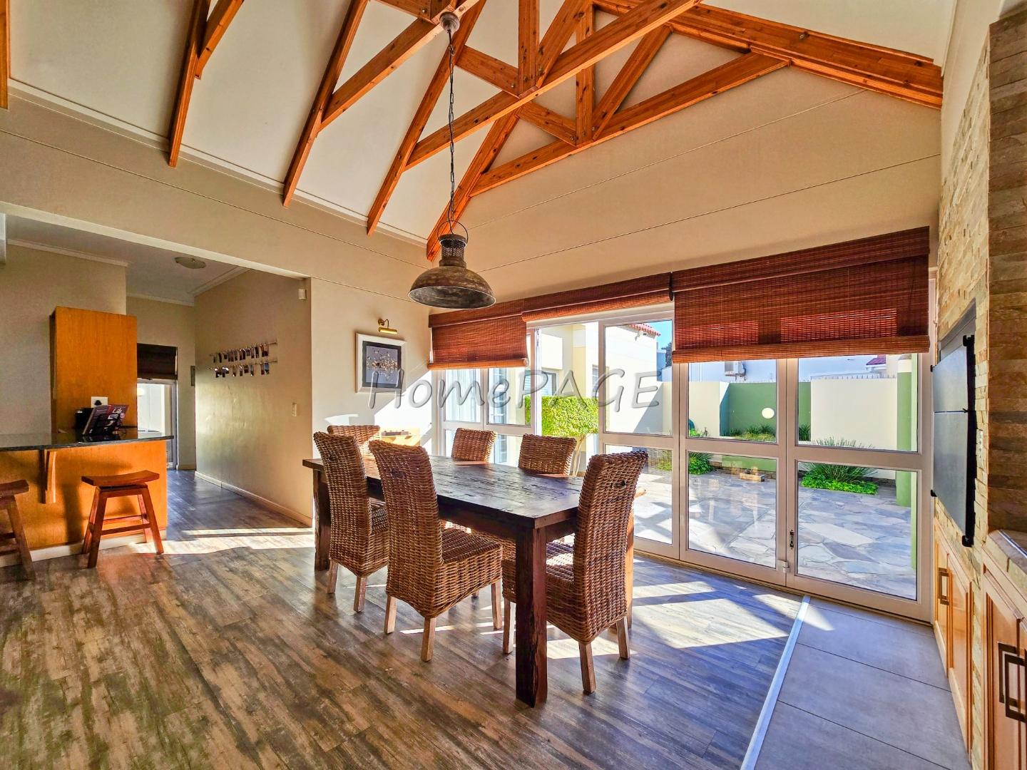 * Living area, with exposed wood trusses, catering for lounge/TV room and dining/bbq room (indoor BBQ)