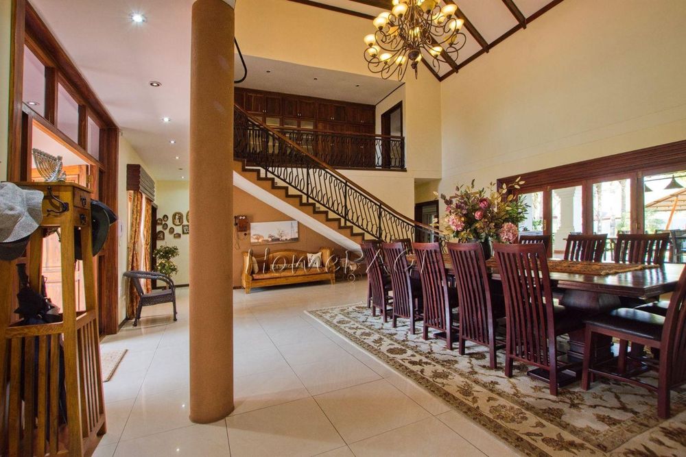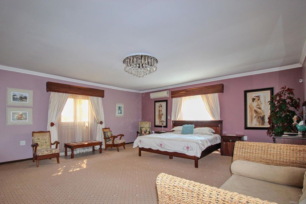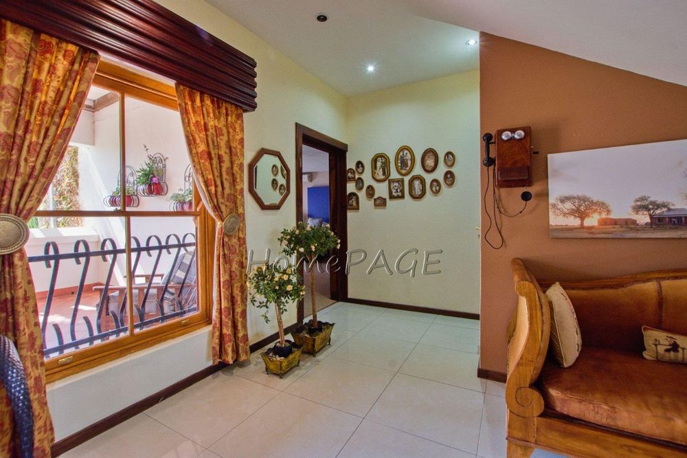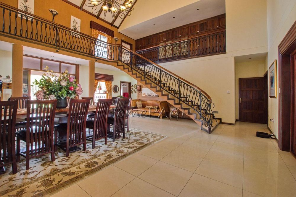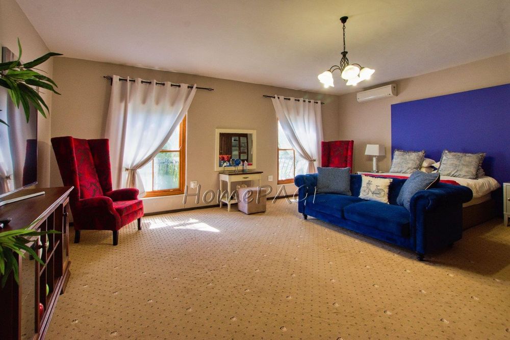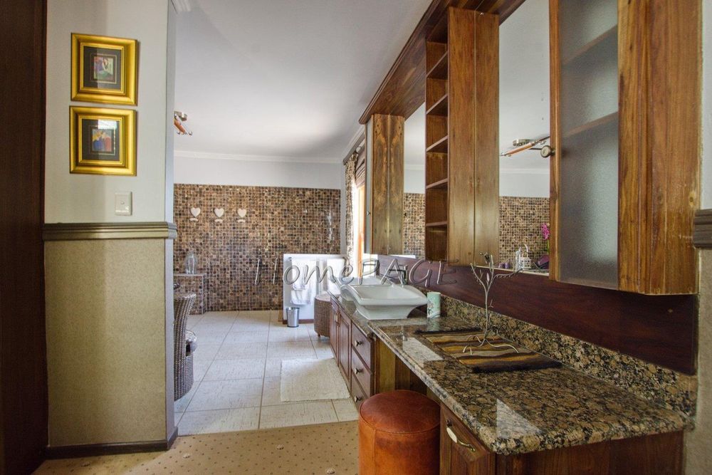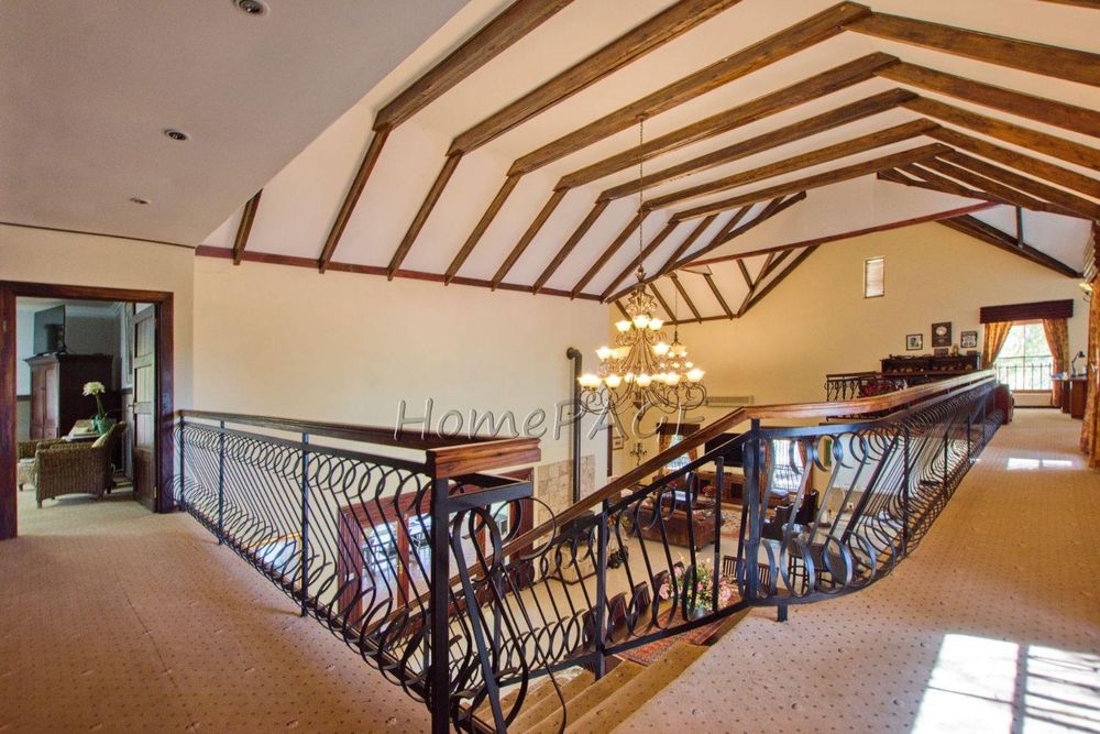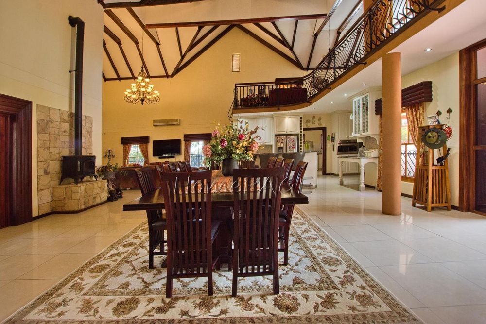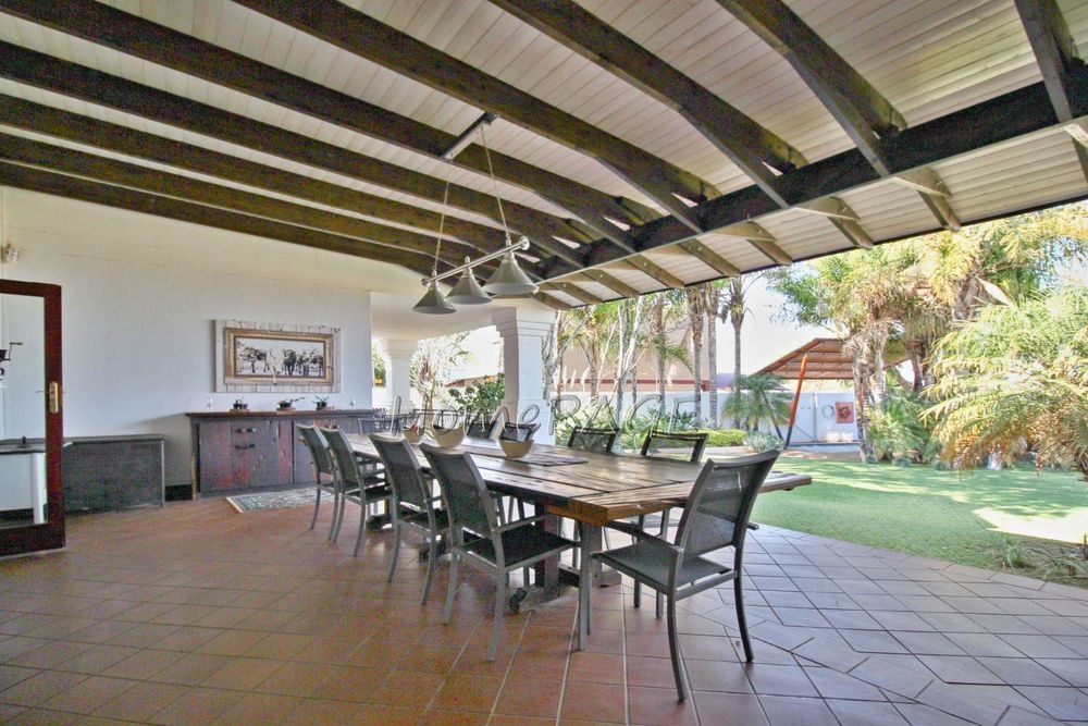 This extraordinary, beautiful house of 865m2 is well located within short distance of the main roads leading to South, North and the West. This house would lend itself beautifully for a luxury guesthouse or even a Boutique Hotel. The house is designed to give a feeling of space and opulence, with its grand open space entrance-dining room, living room, and a beautiful kitchen with granite tops. Big wooden sliding doors leading onto an elevated veranda to drink in the beautiful view of the Paresis mountains and bushveld as well as the beautiful well-maintained garden.
