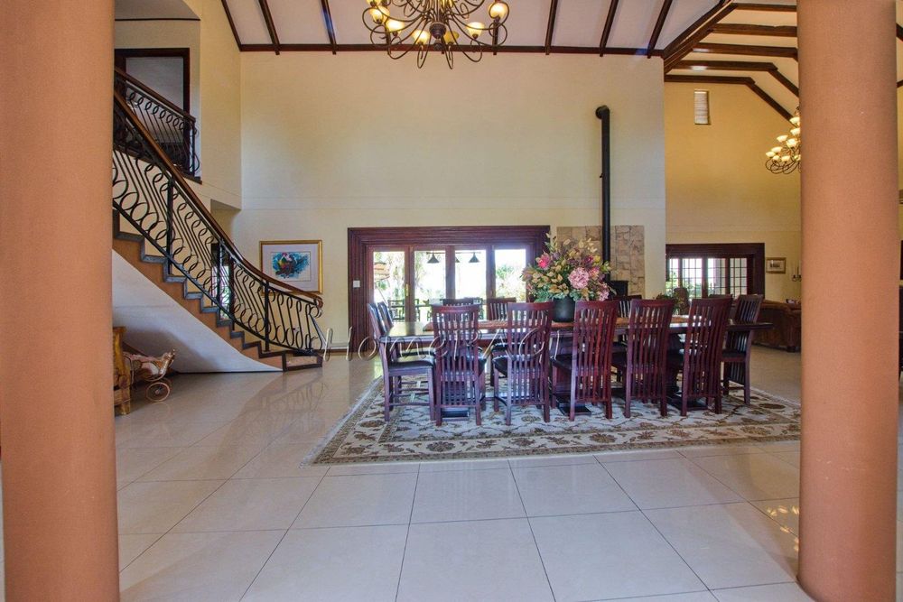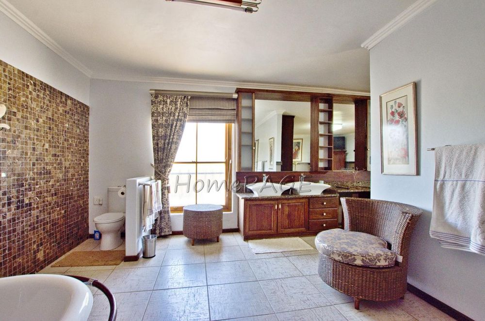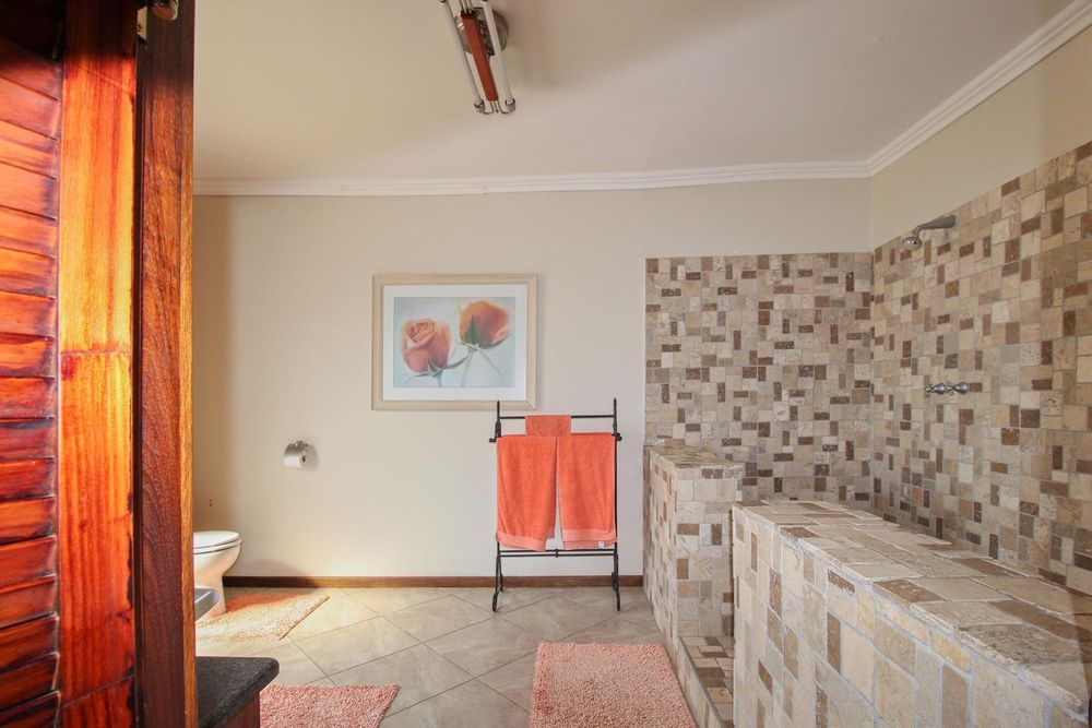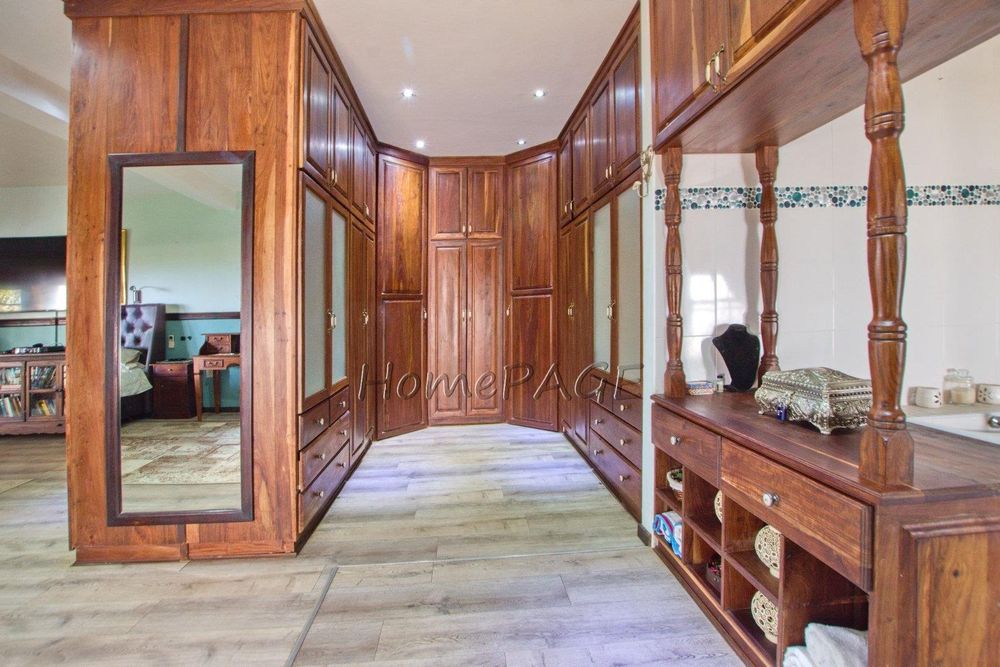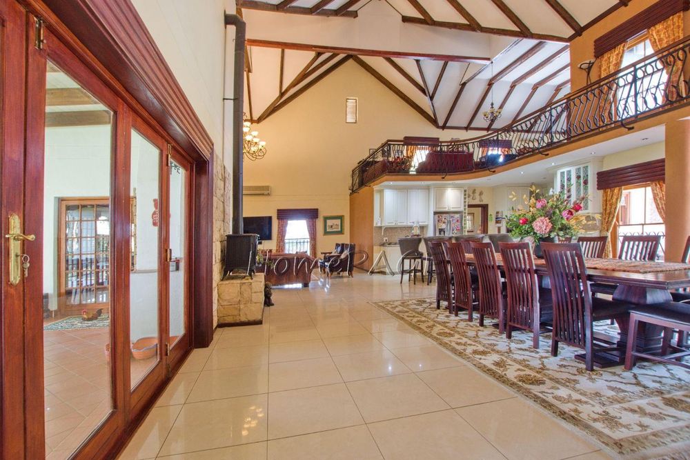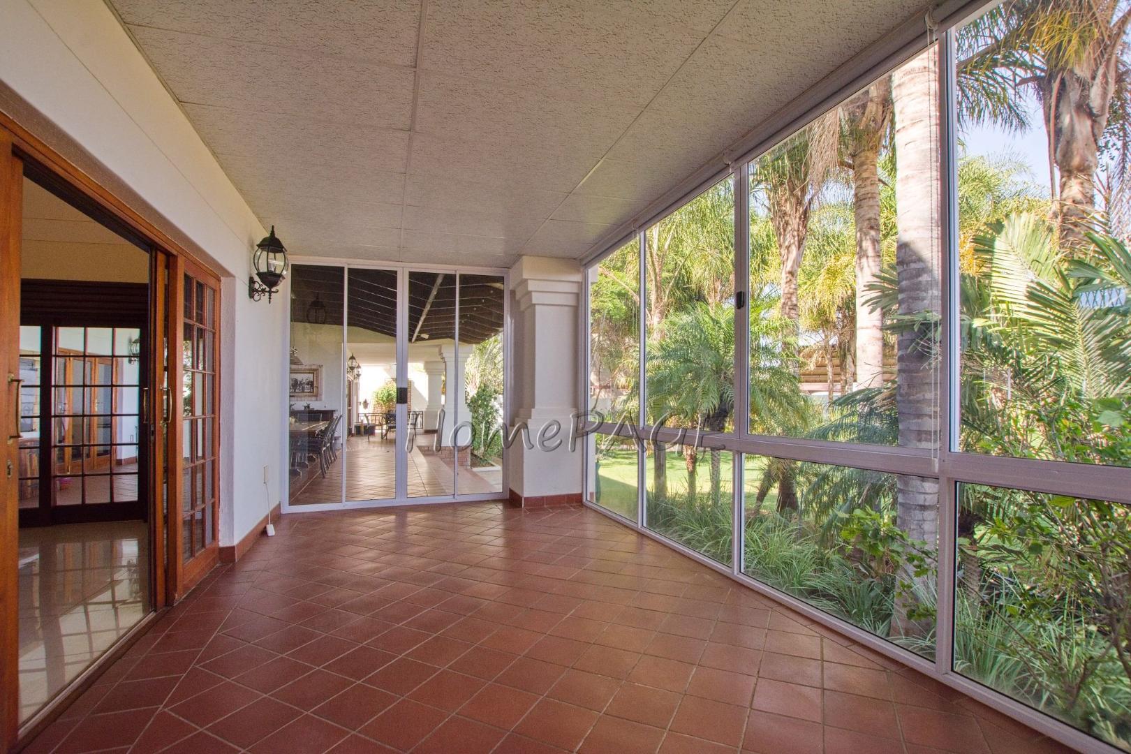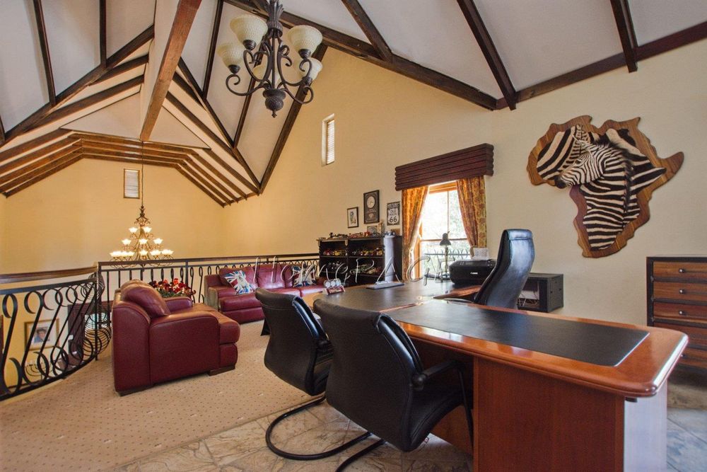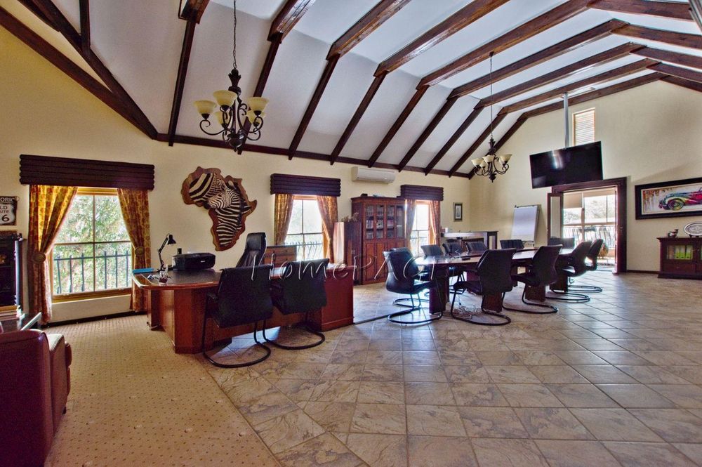 This extraordinary, beautiful house of 865m2 is well located within short distance of the main roads leading to South, North and the West. This house would lend itself beautifully for a luxury guesthouse or even a Boutique Hotel. The house is designed to give a feeling of space and opulence, with its grand open space entrance-dining room, living room, and a beautiful kitchen with granite tops. Big wooden sliding doors leading onto an elevated veranda to drink in the beautiful view of the Paresis mountains and bushveld as well as the beautiful well-maintained garden.