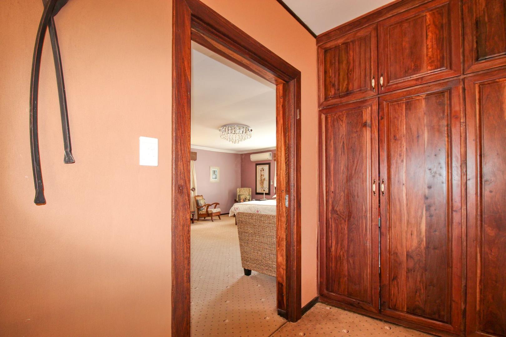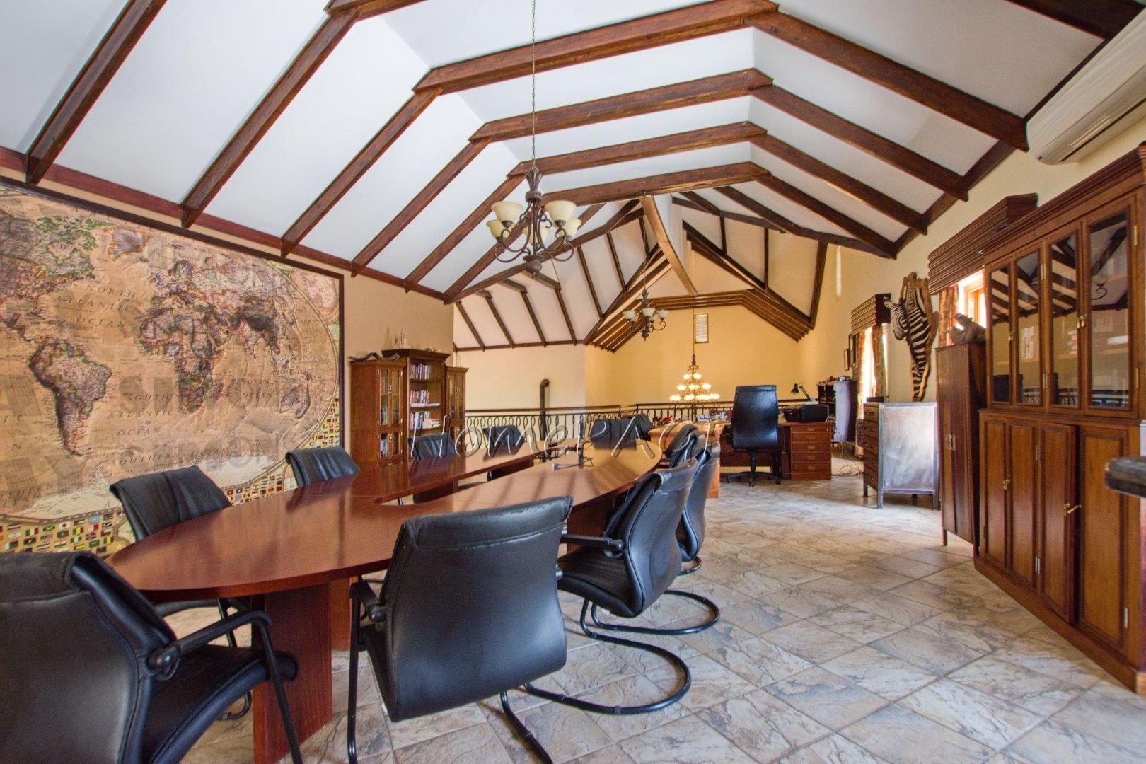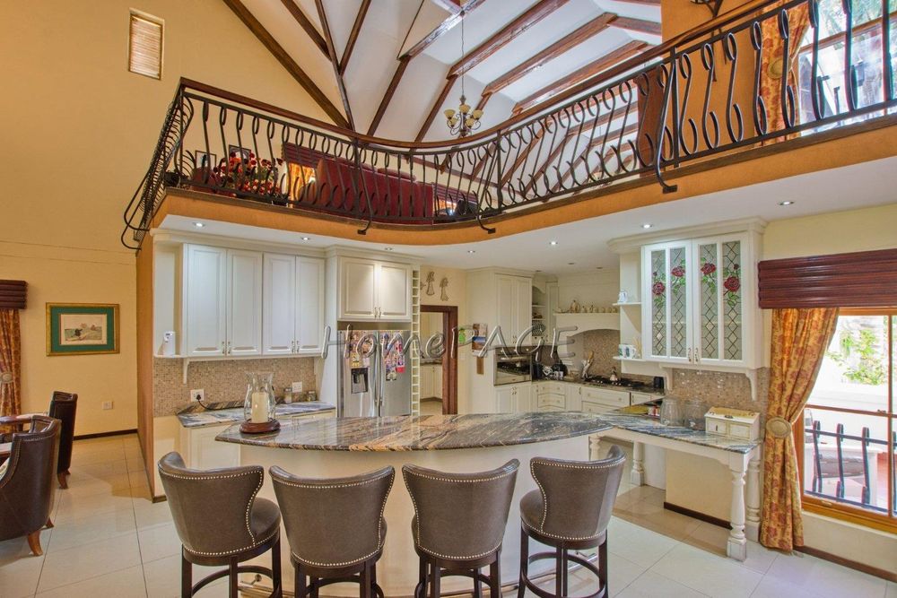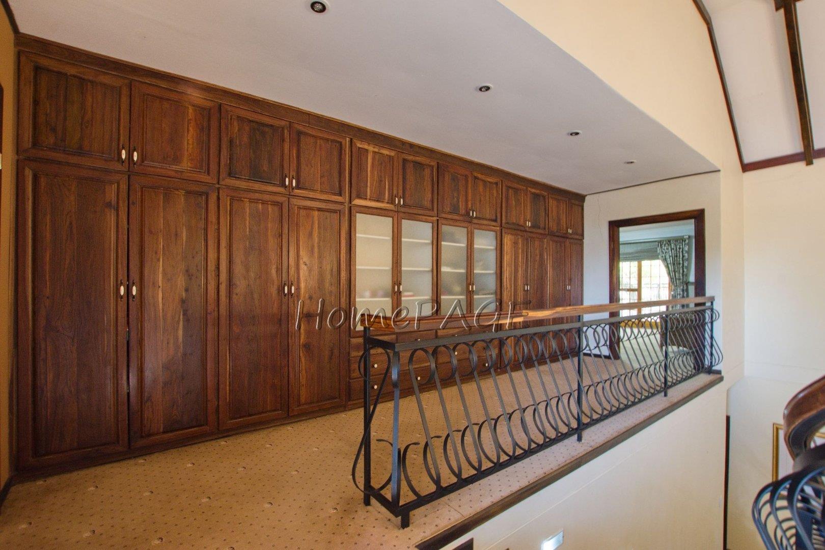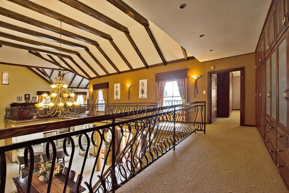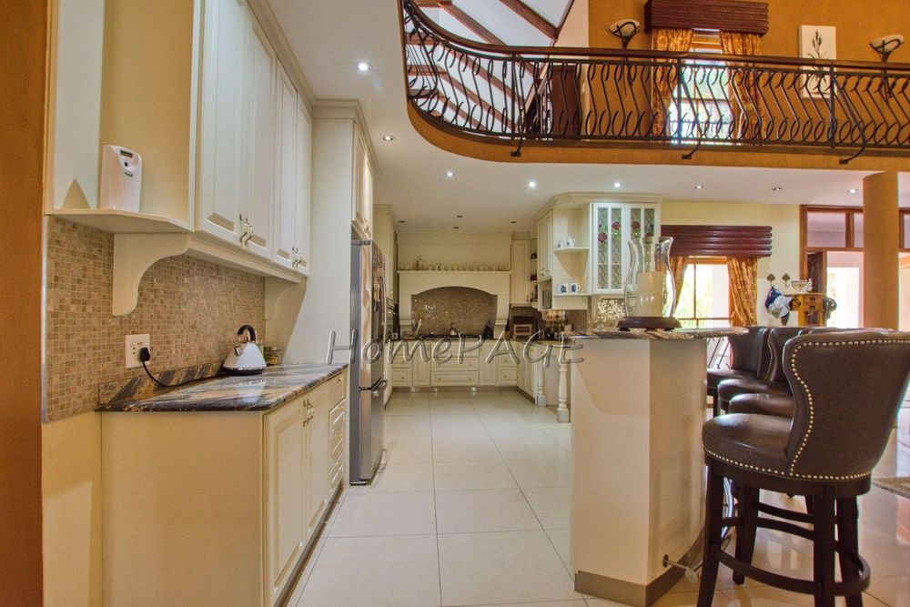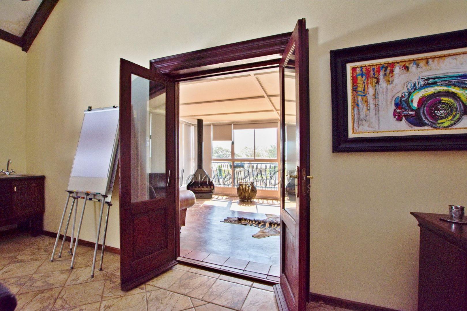 This extraordinary, beautiful house of 865m2 is well located within short distance of the main roads leading to South, North and the West. This house would lend itself beautifully for a luxury guesthouse or even a Boutique Hotel. The house is designed to give a feeling of space and opulence, with its grand open space entrance-dining room, living room, and a beautiful kitchen with granite tops. Big wooden sliding doors leading onto an elevated veranda to drink in the beautiful view of the Paresis mountains and bushveld as well as the beautiful well-maintained garden.
