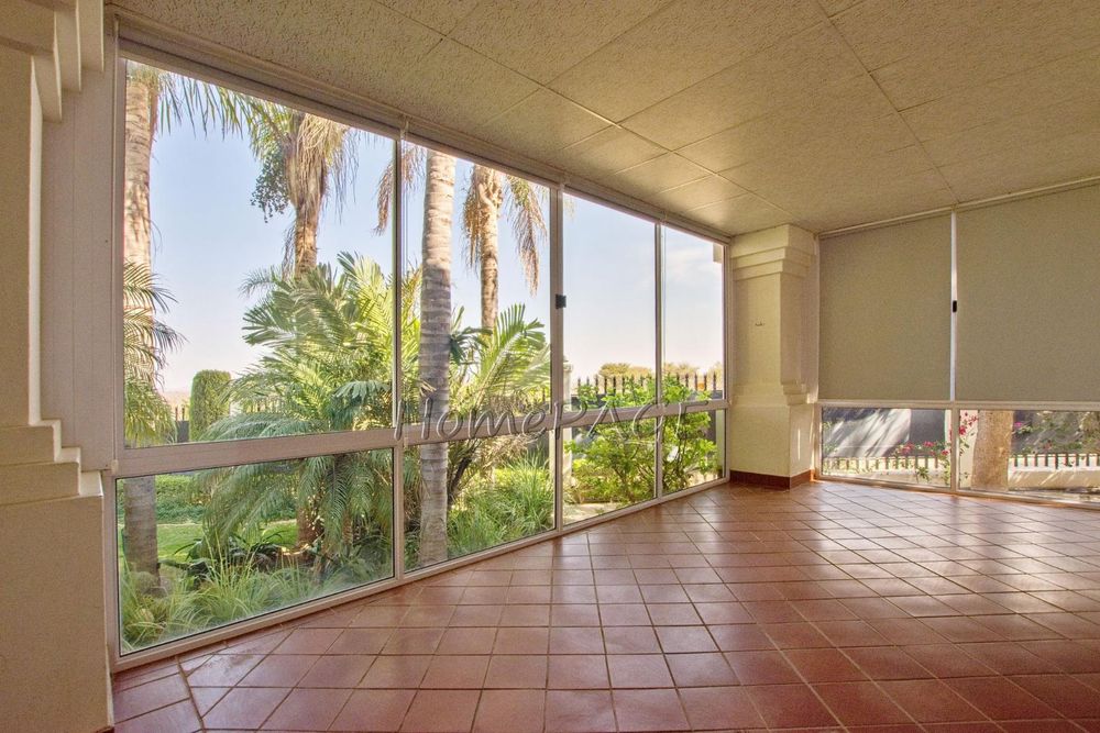 - Glass-enclosed veranda leading from the living room.