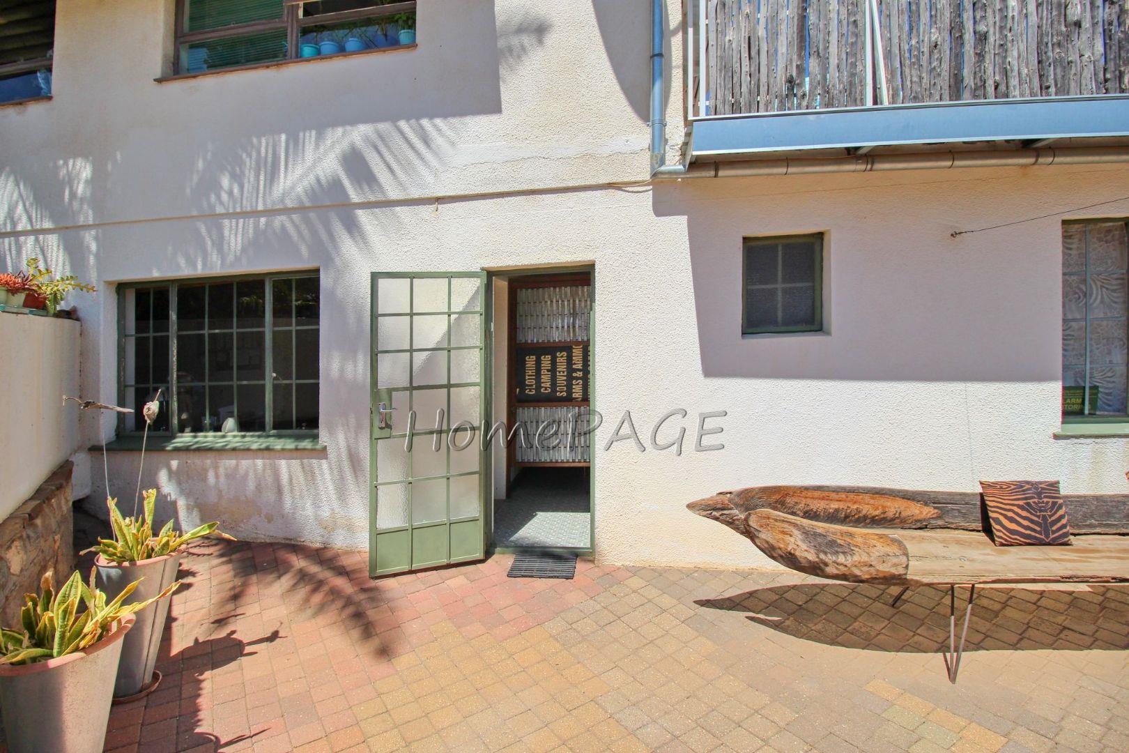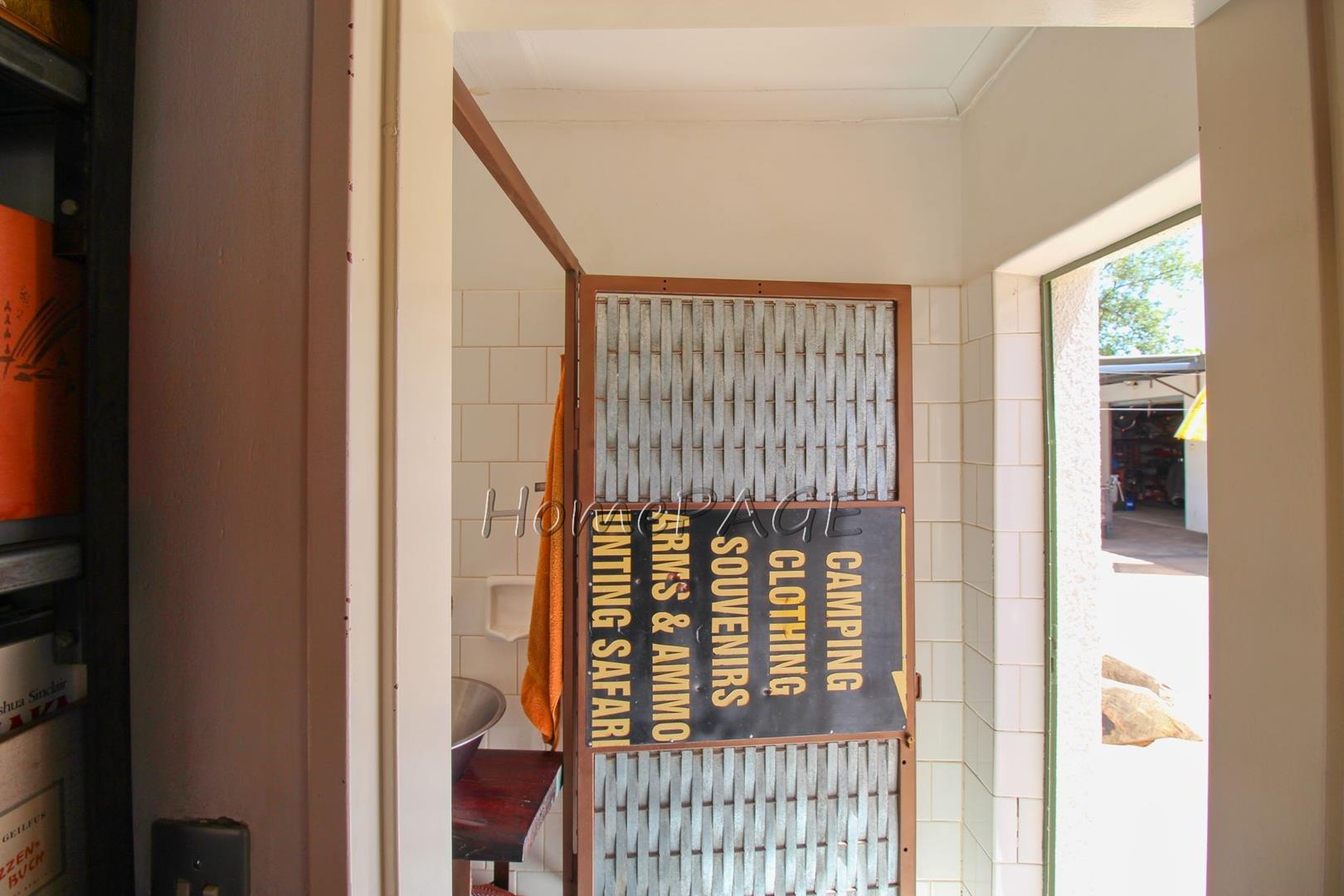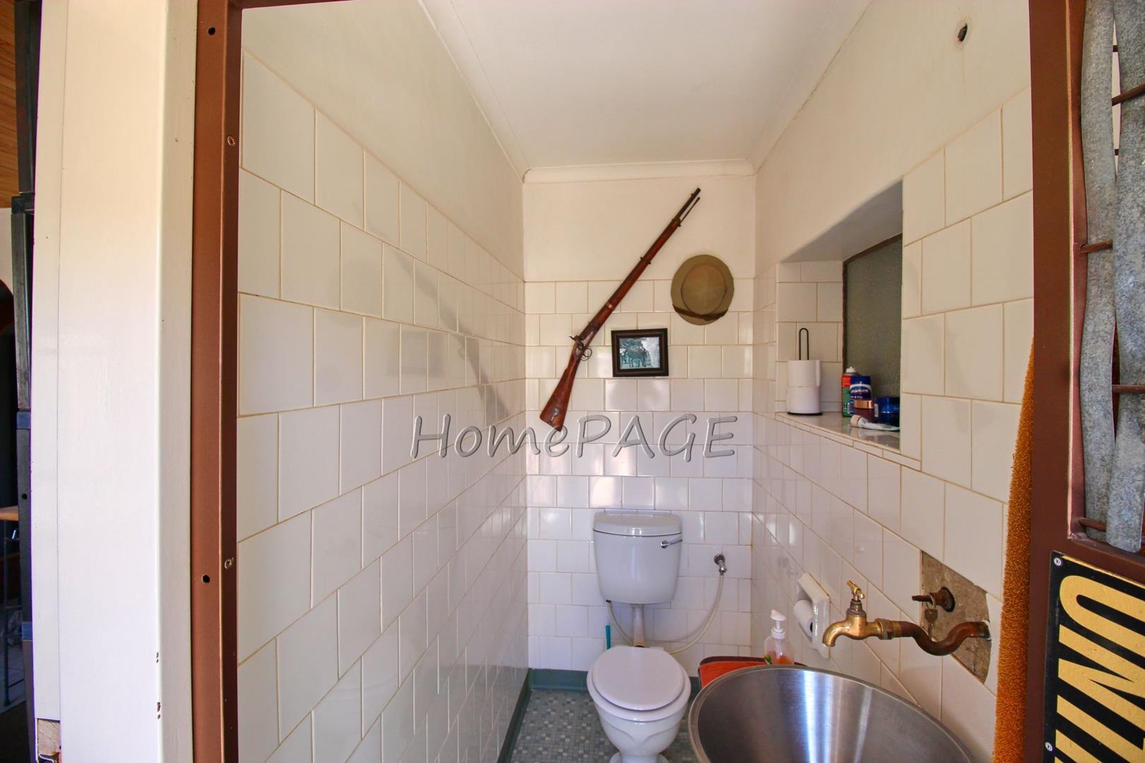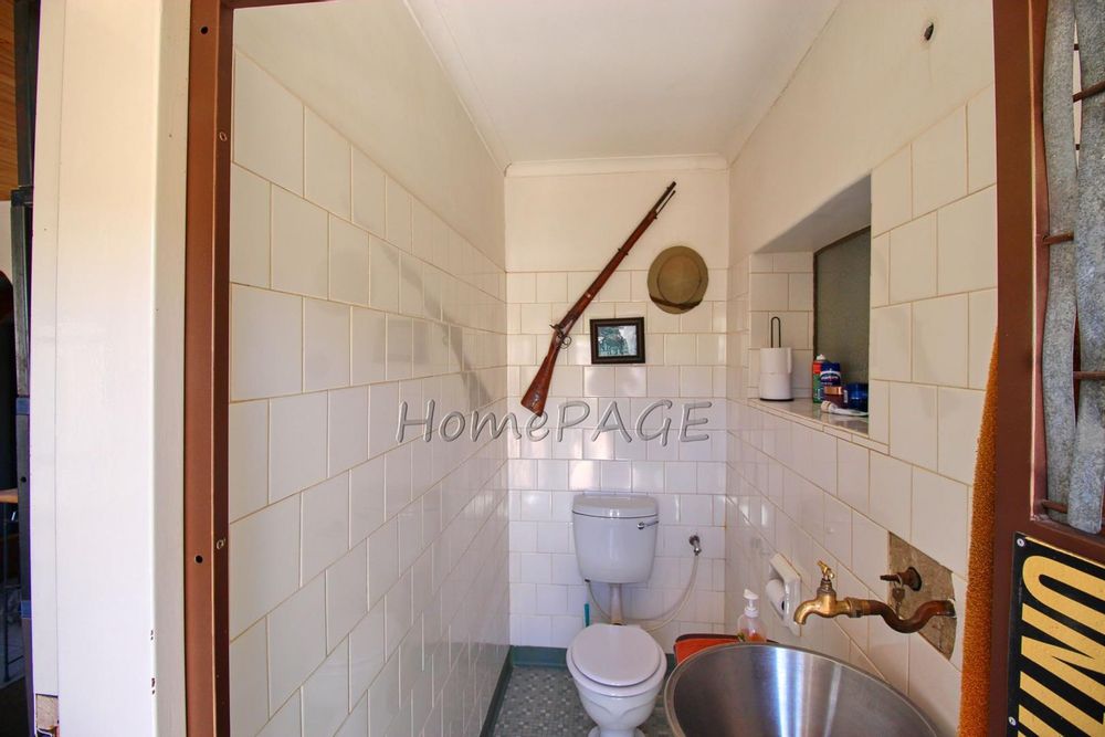 Downstairs is the lounge area leading to the patio with swimming pool. Dining room and small kitchen with scullery leading onto the outside veranda with built-in braai, large entertainment area and thatched roof bar.