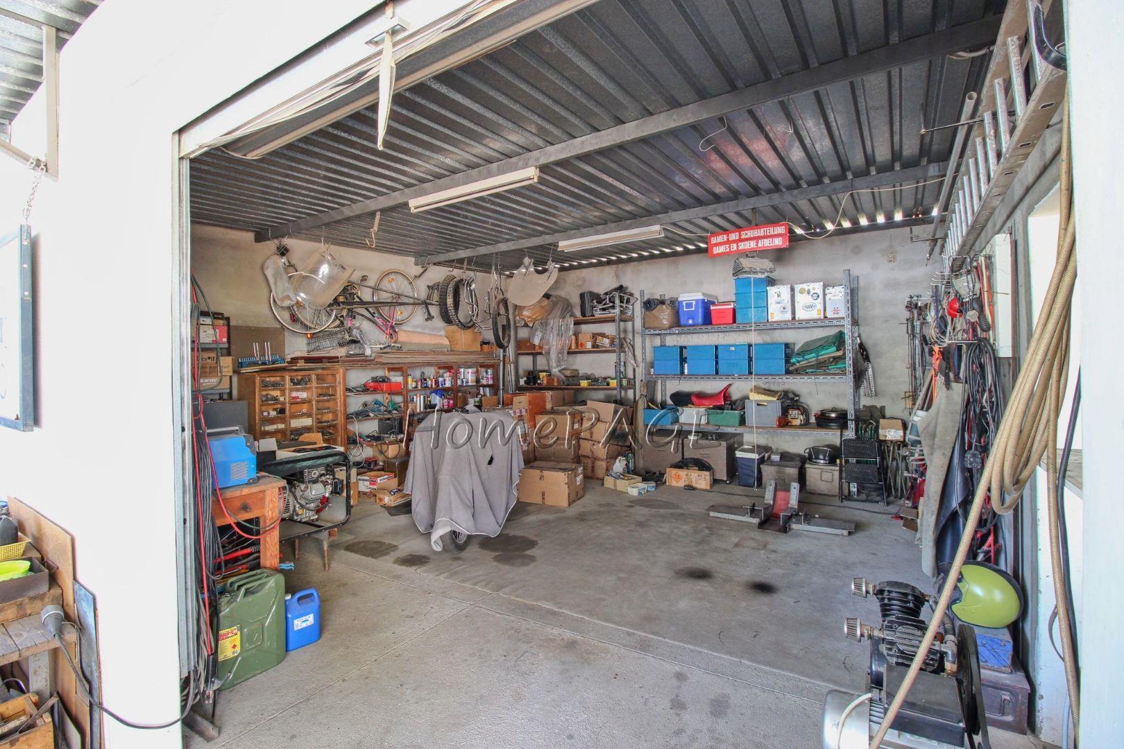 Large single garage with lots of space for storage. Large workroom and another smaller workroom which is also currently used as an office.