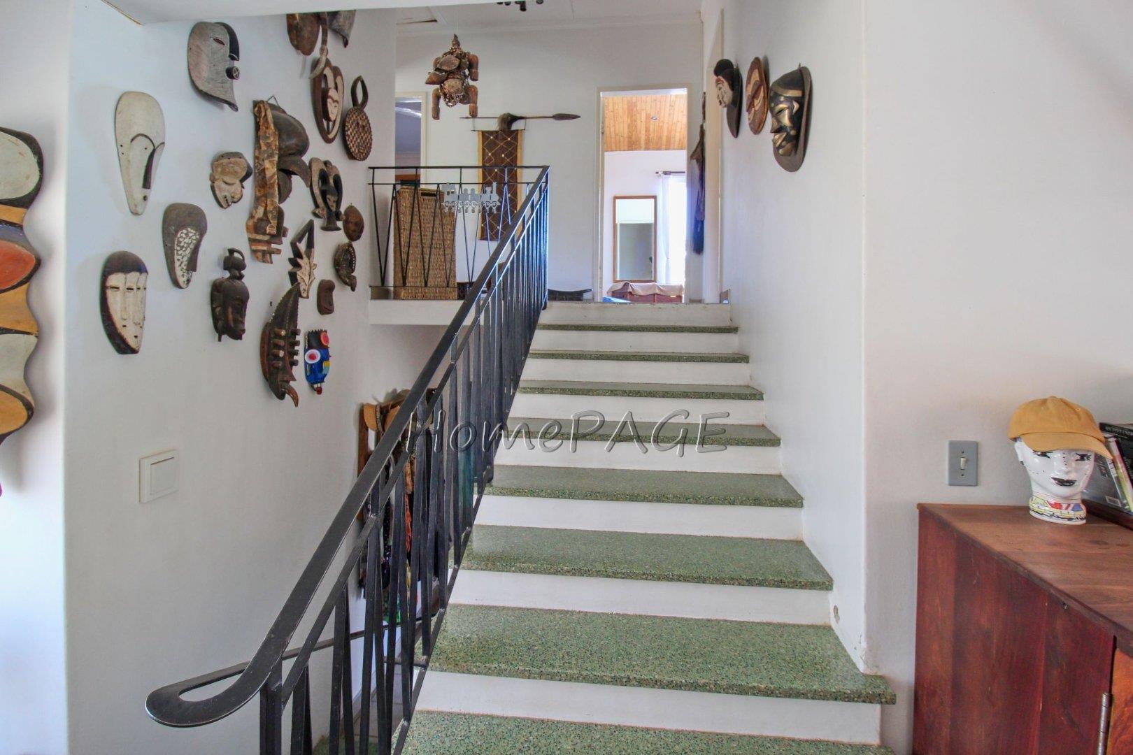 Stairs leading into the basement where you’ll find a large storeroom and washing room as well as a study which was previously used as another bedroom with toilet, ideal “mancave”