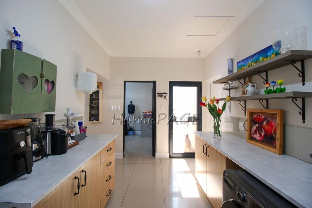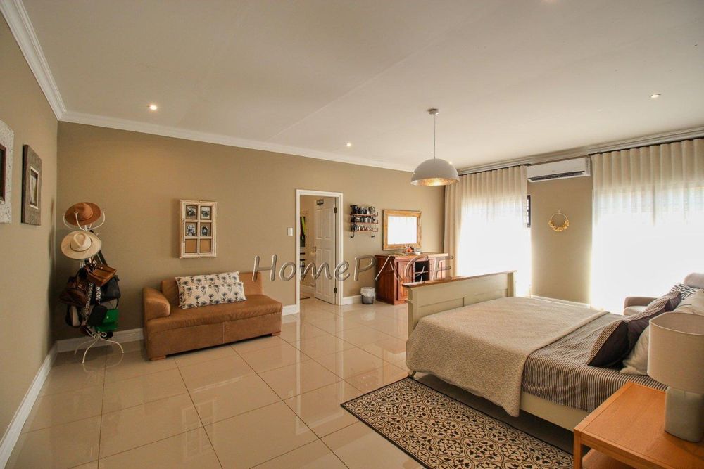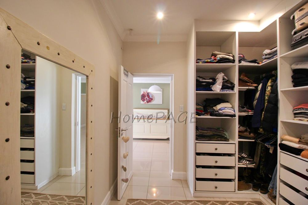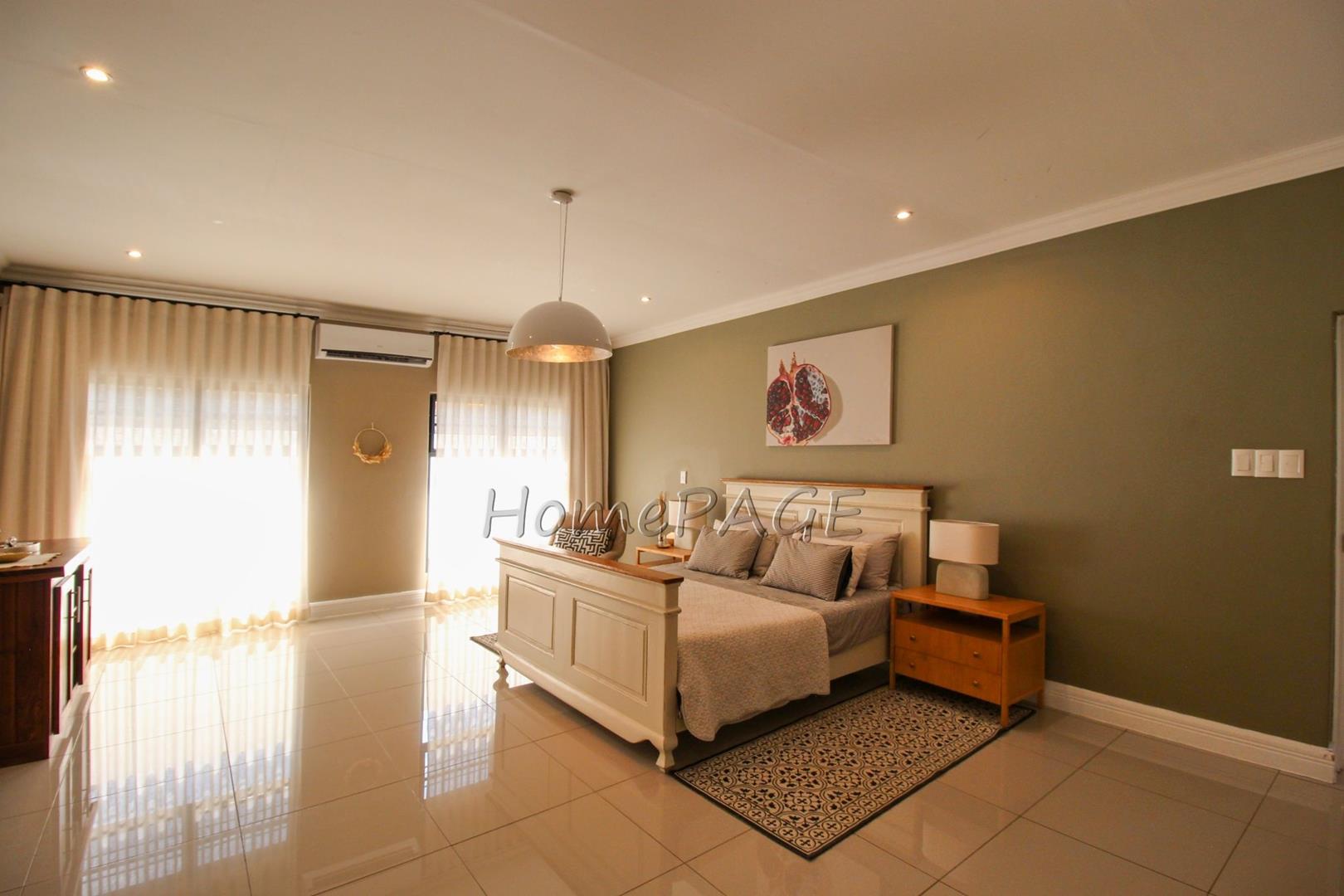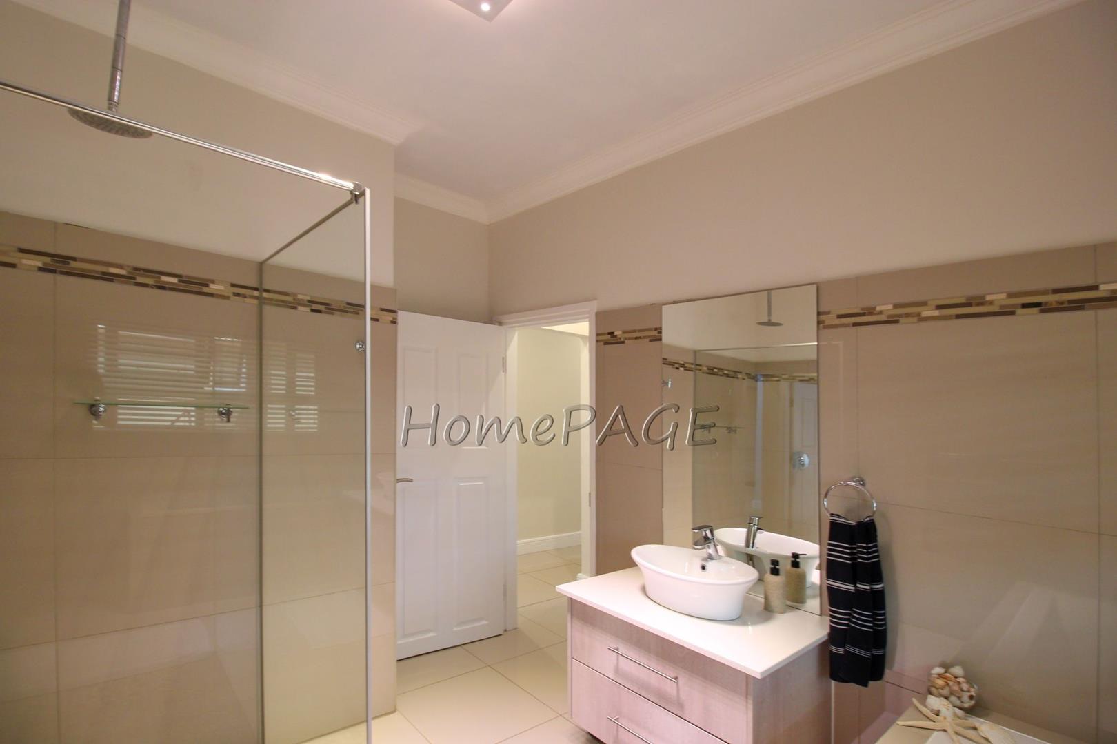 All 4 beautiful bedrooms have built in cupboards and beautiful on-suite bathrooms. The main bedroom with adjourning dressing room and luxurious bathroom with a freestanding bath, two basins and a shower and toilet. Large modern porcelain tiles through-out the home.