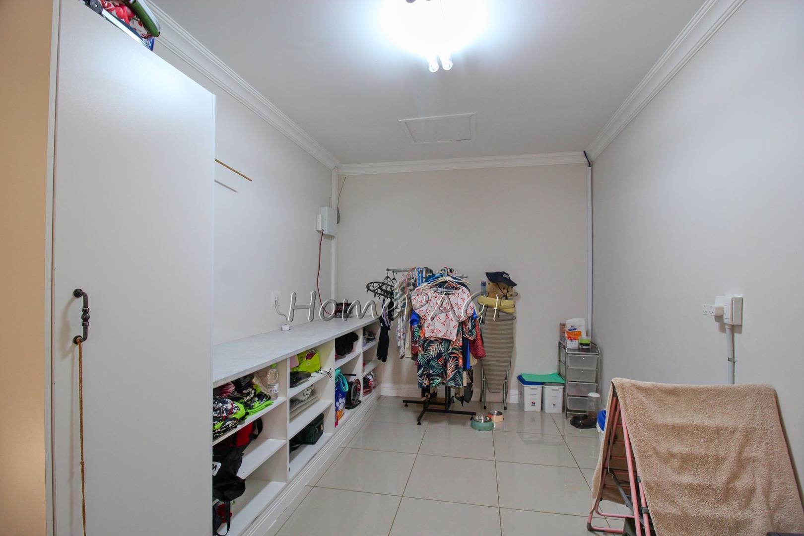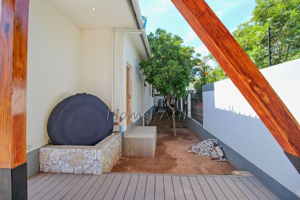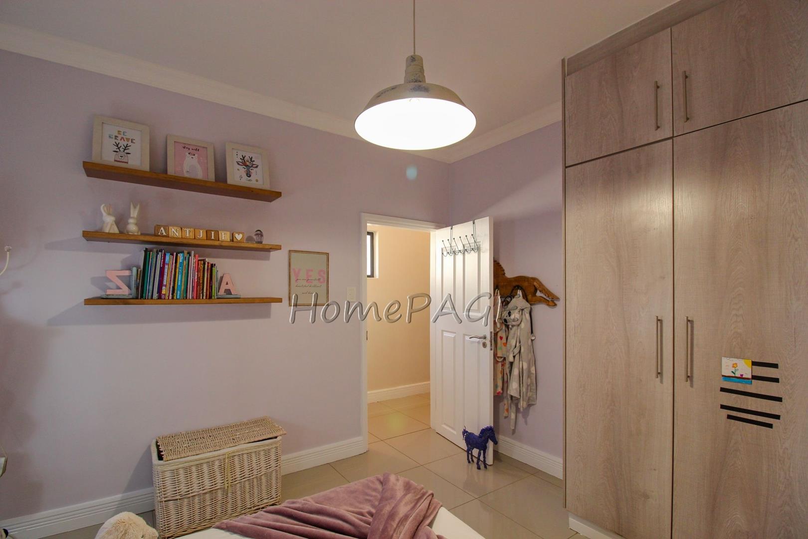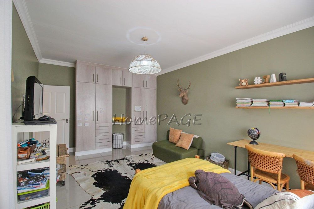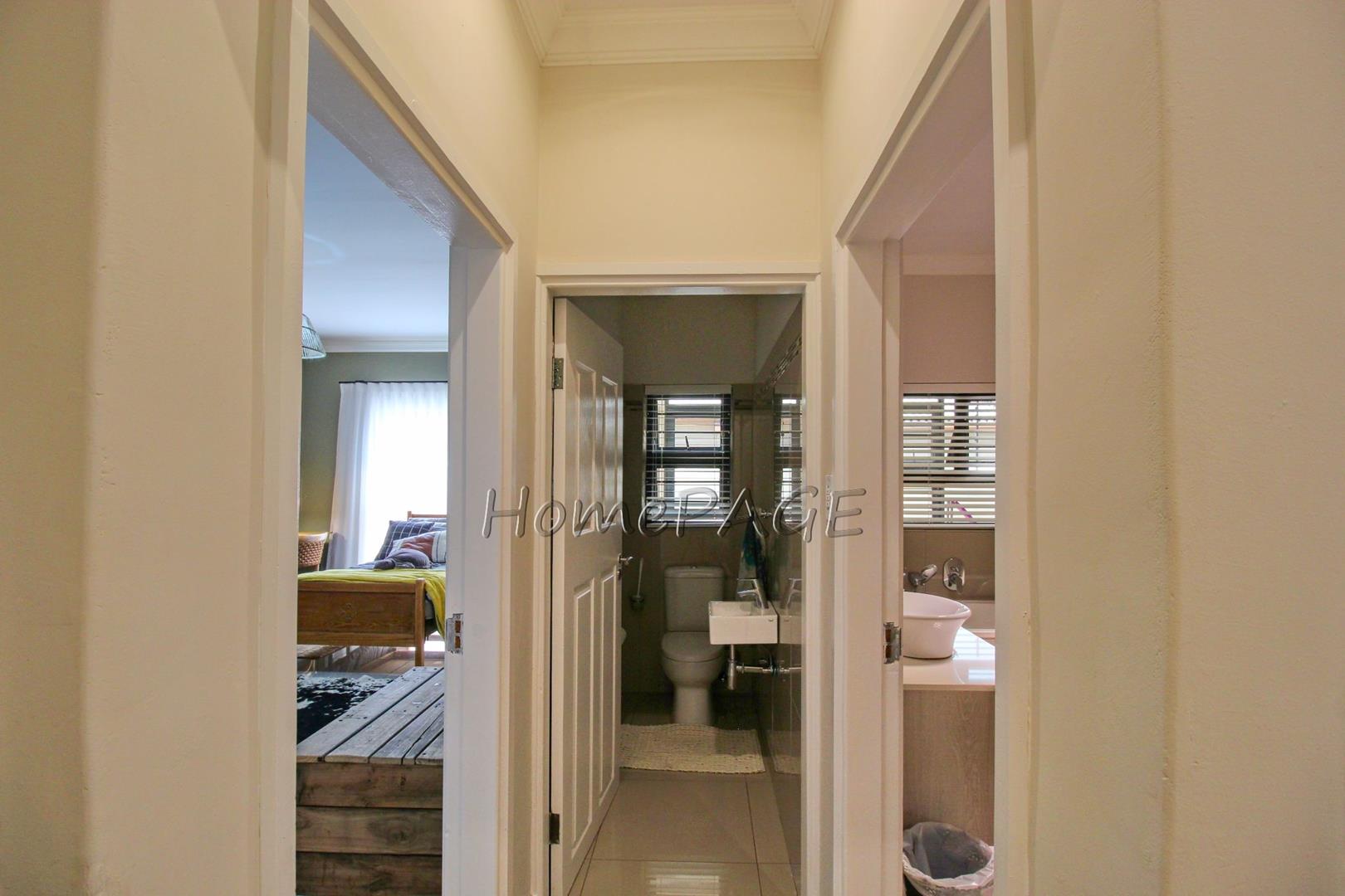 All 4 beautiful bedrooms have built in cupboards and beautiful on-suite bathrooms. The main bedroom with adjourning dressing room and luxurious bathroom with a freestanding bath, two basins and a shower and toilet. Large modern porcelain tiles through-out the home.