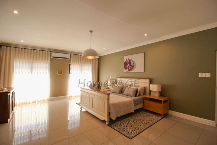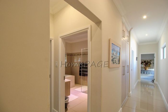 - Main bedroom with a walk-through cupboard which leads to a full bathroom with shower, bath, toilet and basin.