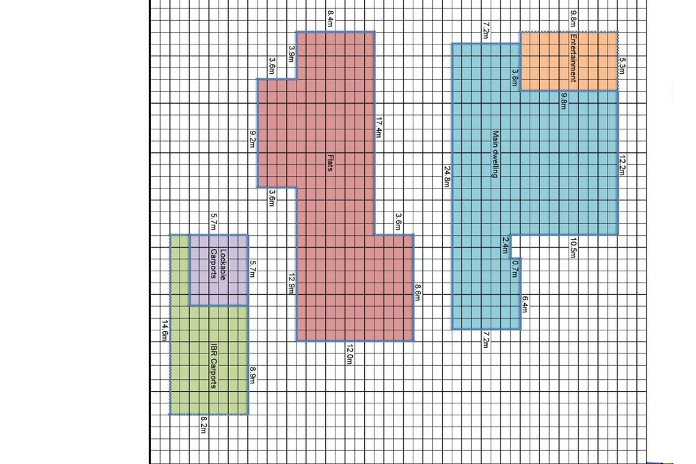 - The kitchen has no cupboards, leads into a second kitchen and entertainment area (52m2).