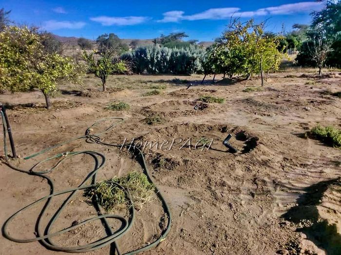 5.4 hectare plot with fruit trees, water dam, tanks, irrigation, staff house, containers, boreholes, and available utilities for N$2.1m.