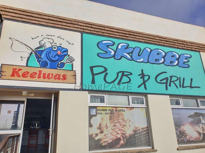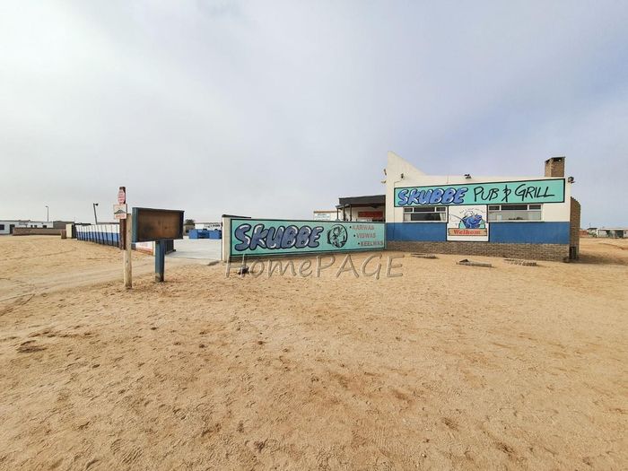 Coastal business complex in Henties Bay — iconic Skubbe Pub & Grill with licensed bar and deck, fishing-tackle shop, car wash, fish-cleaning bays and ample parking.