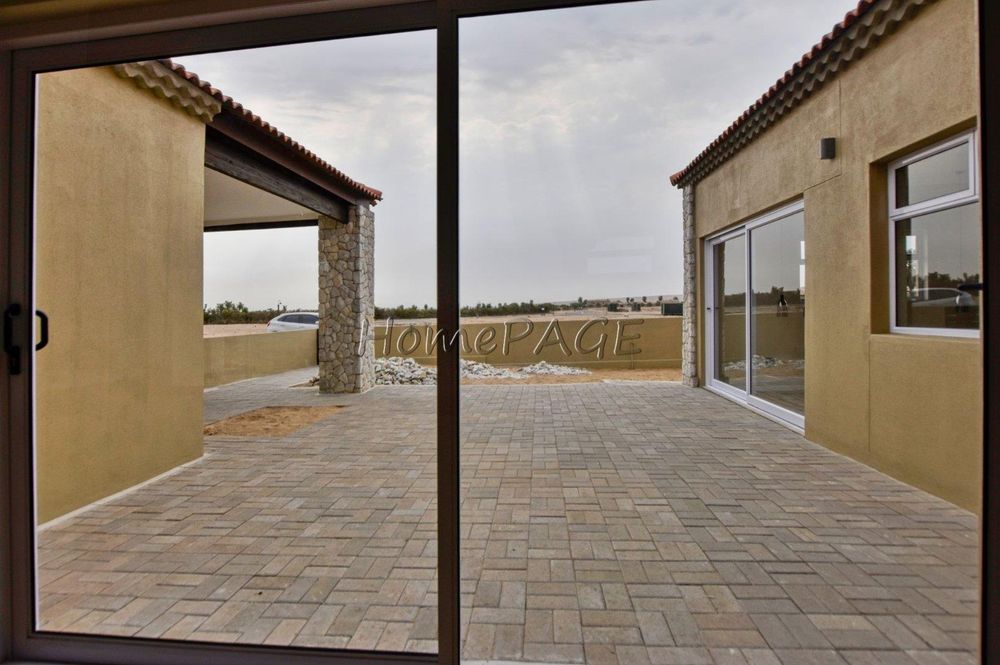 * Patio, direct adjacent to living area, that is protected from the wind on three sides (as home is in U-Shape)