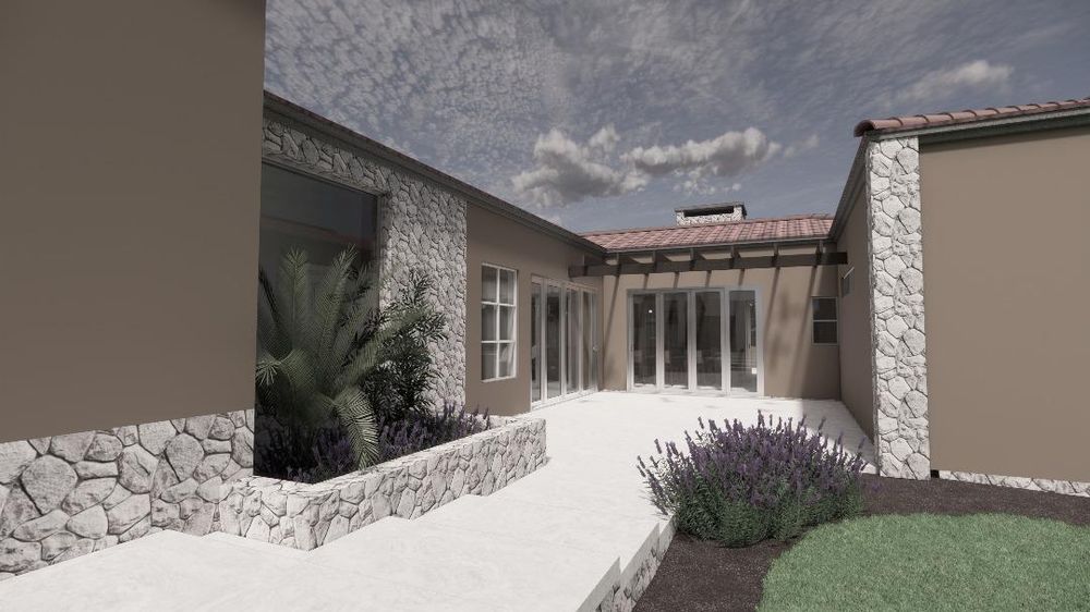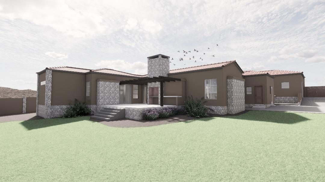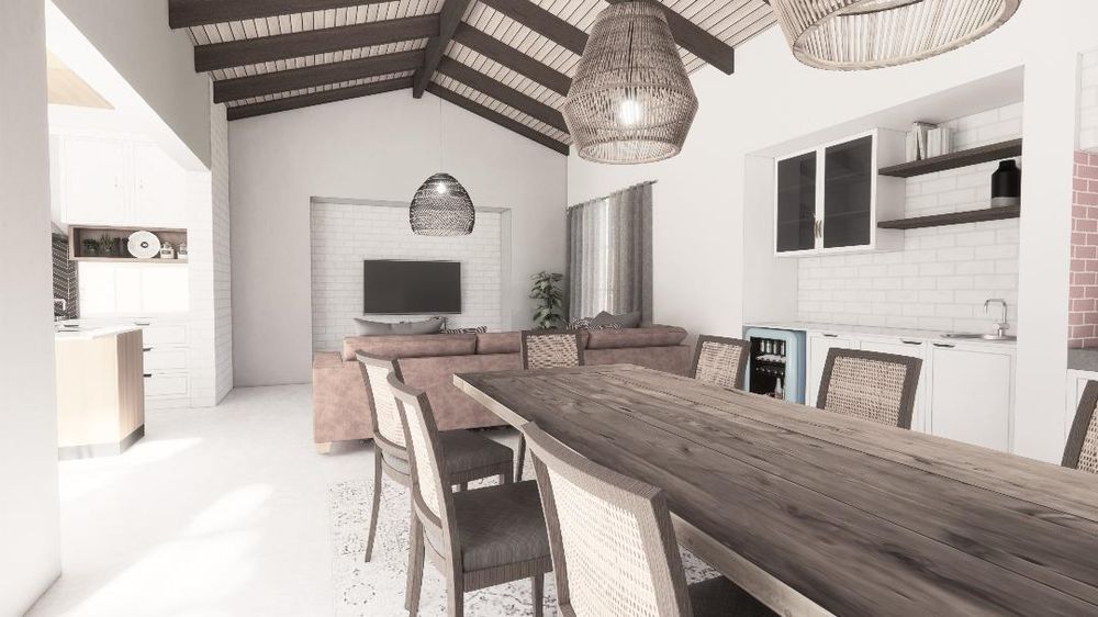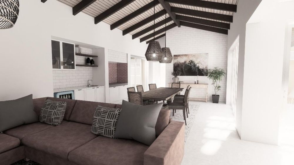 * Adjacent to living area is a patio, with pergola and outdoor BBQ
