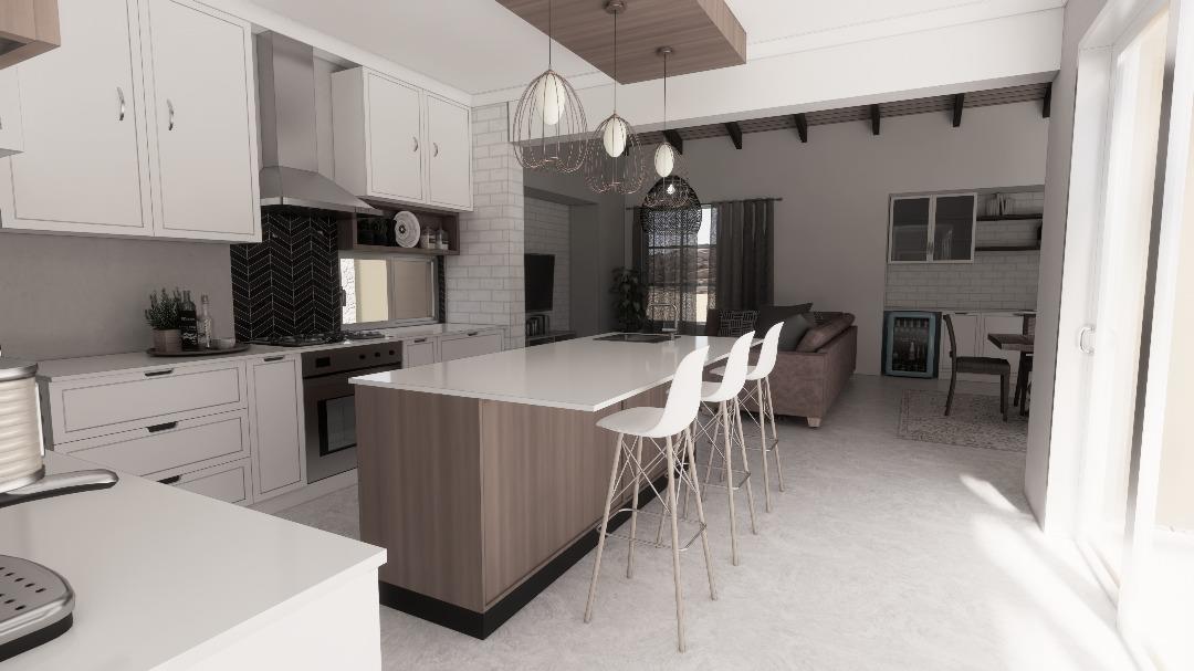 * Large living area, providing for lounge/dining room, open plan with kitchen