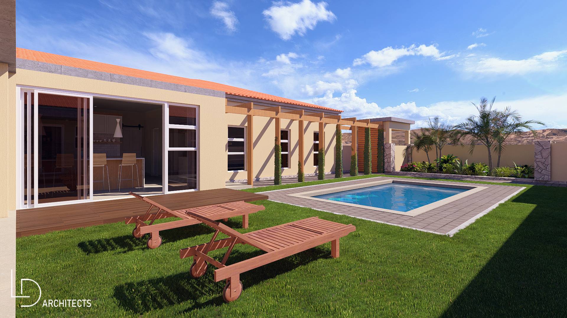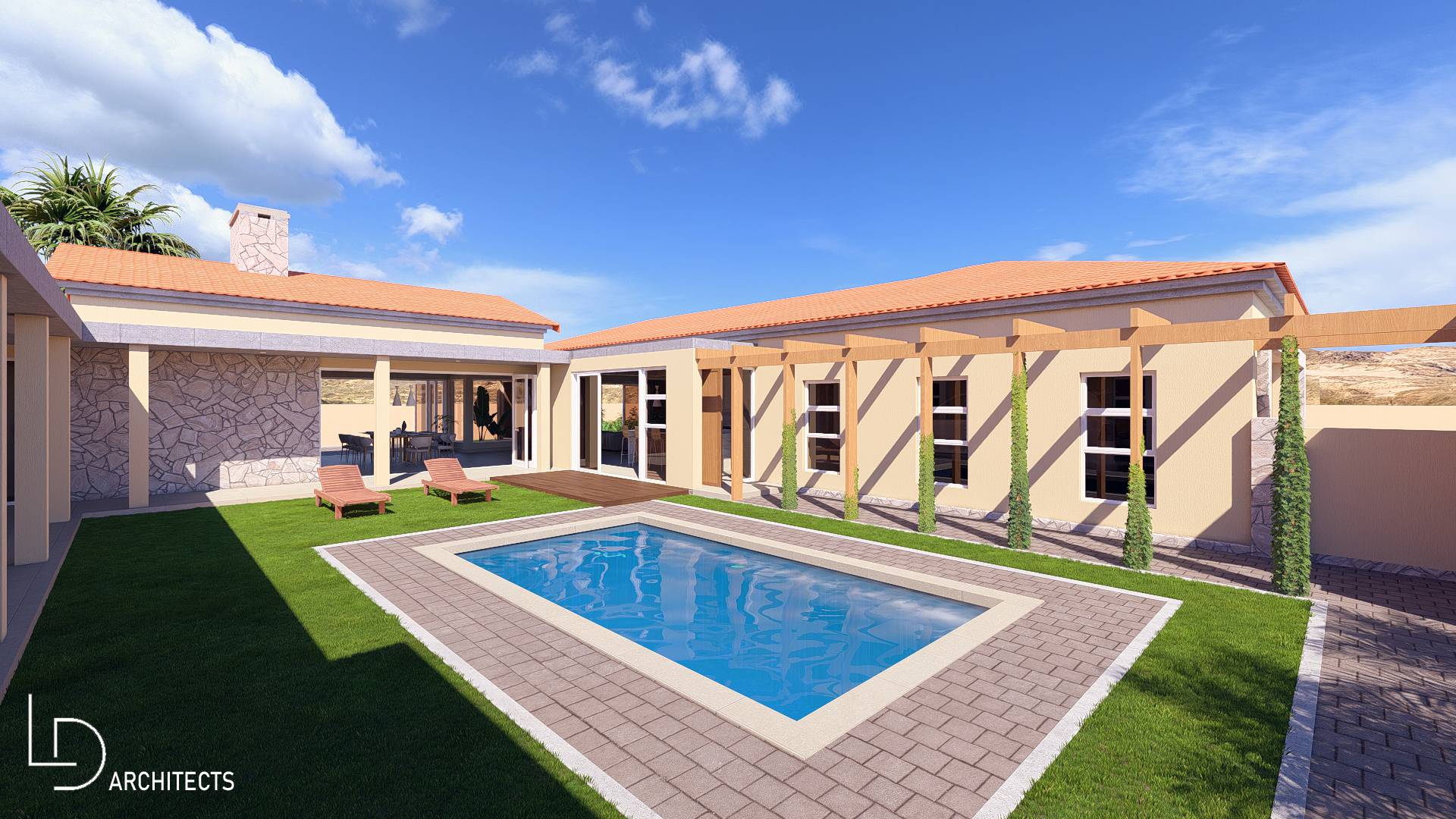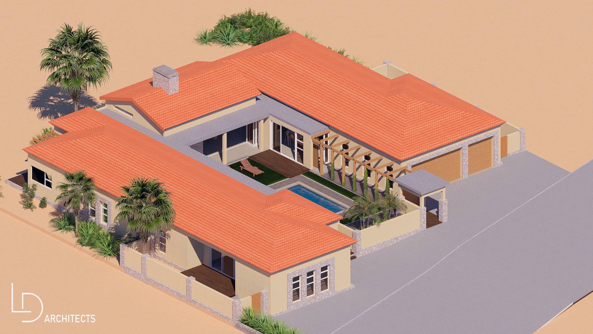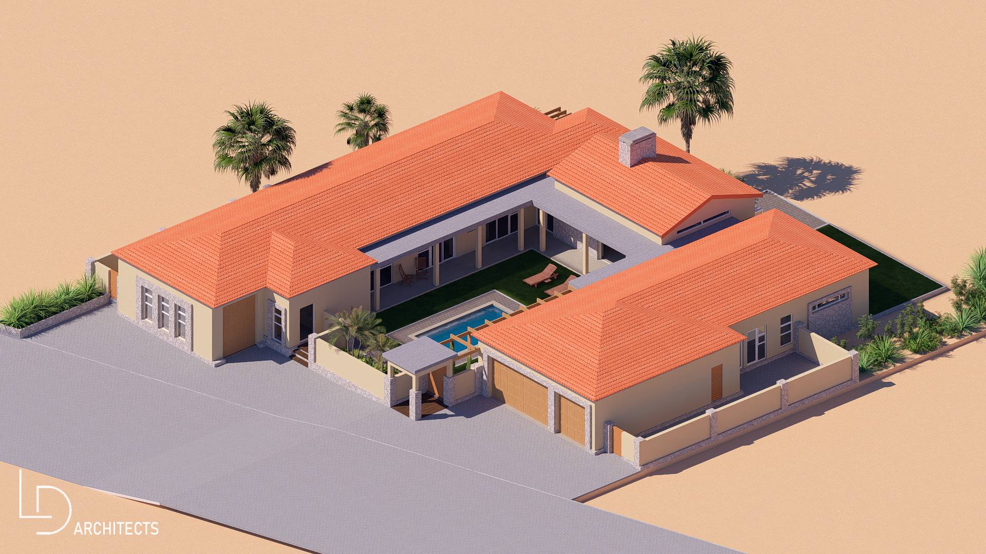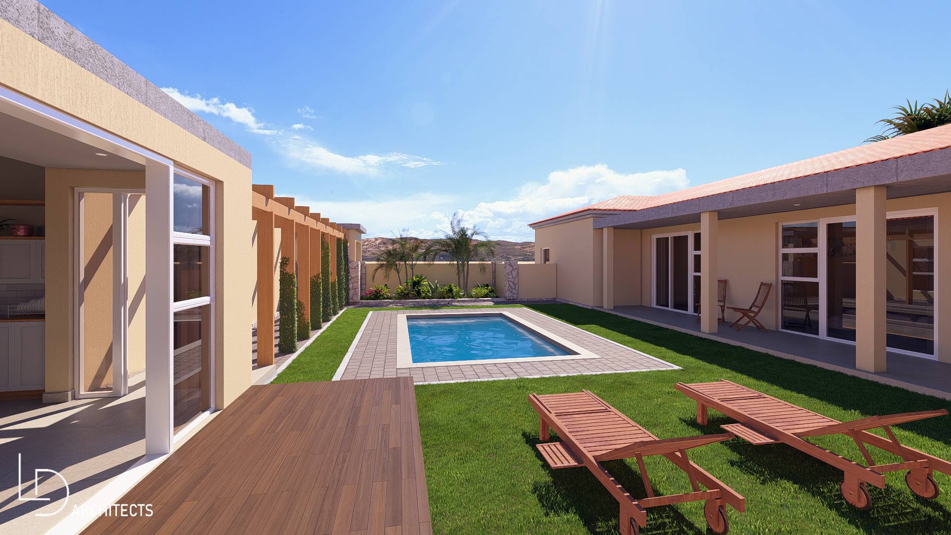 * Large swimming pool in the North Facing U-Shaped garden