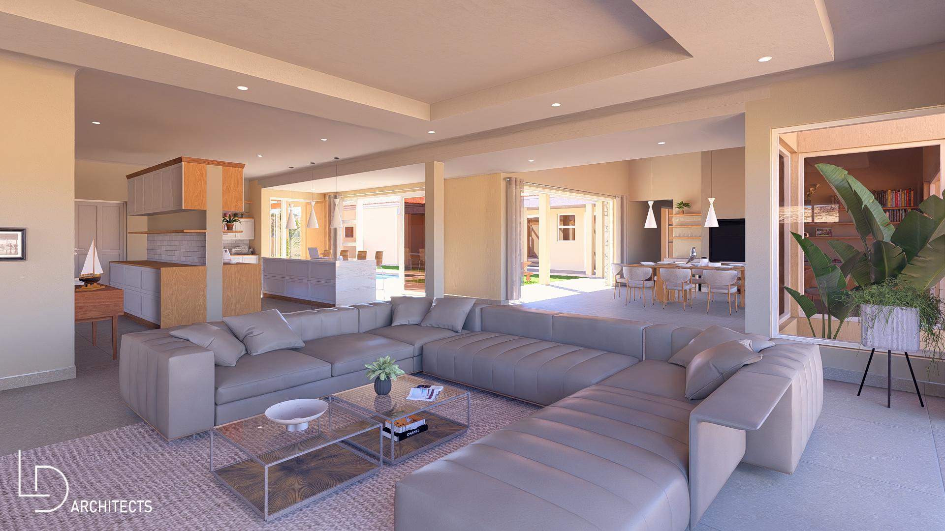* Large living area, catering for Dining/BBQ room (indoor BBQ, prep Bowl) and lounge