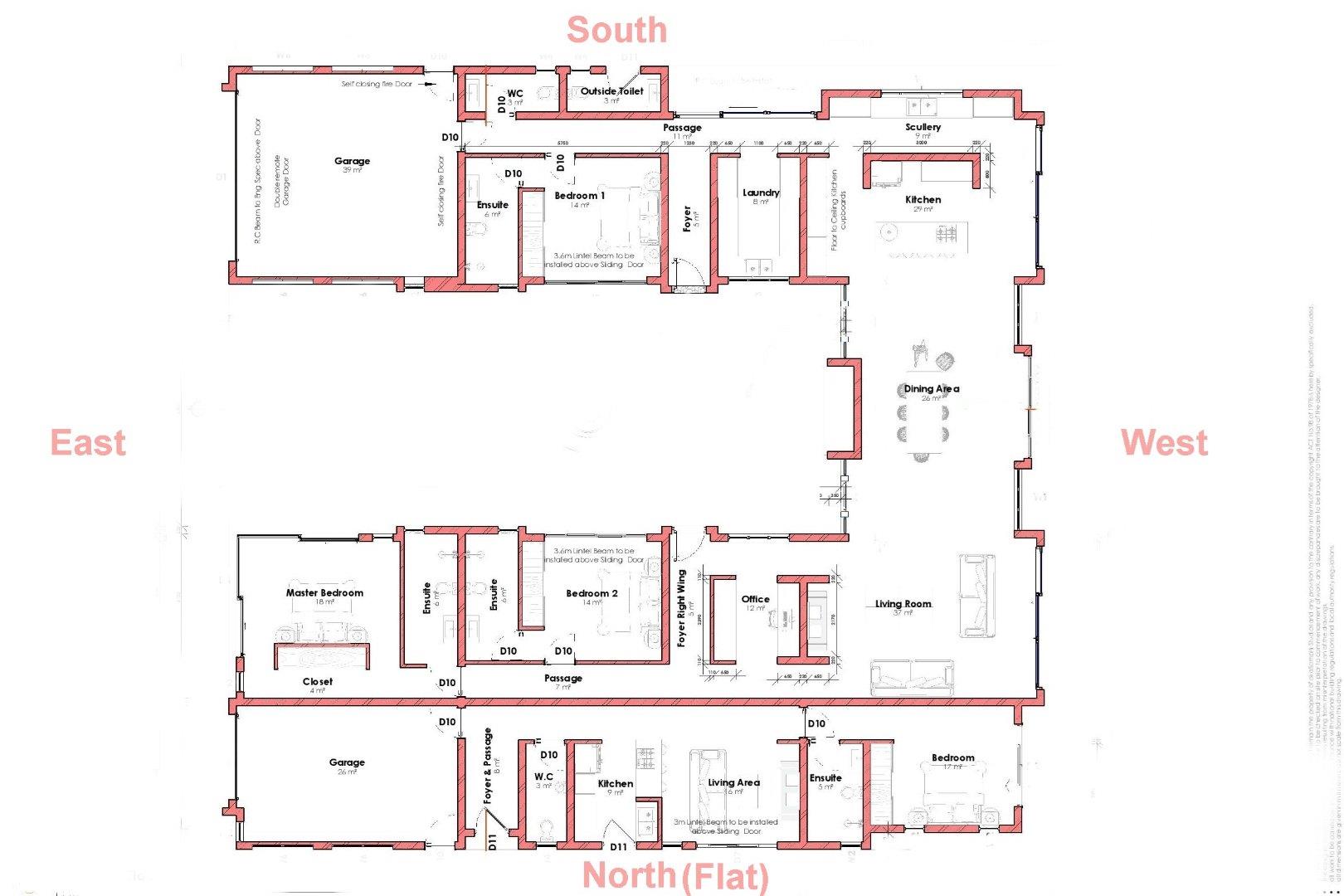* Home 281m2, Flat 58m2, Garages total 65m2, TOTAL 346m2