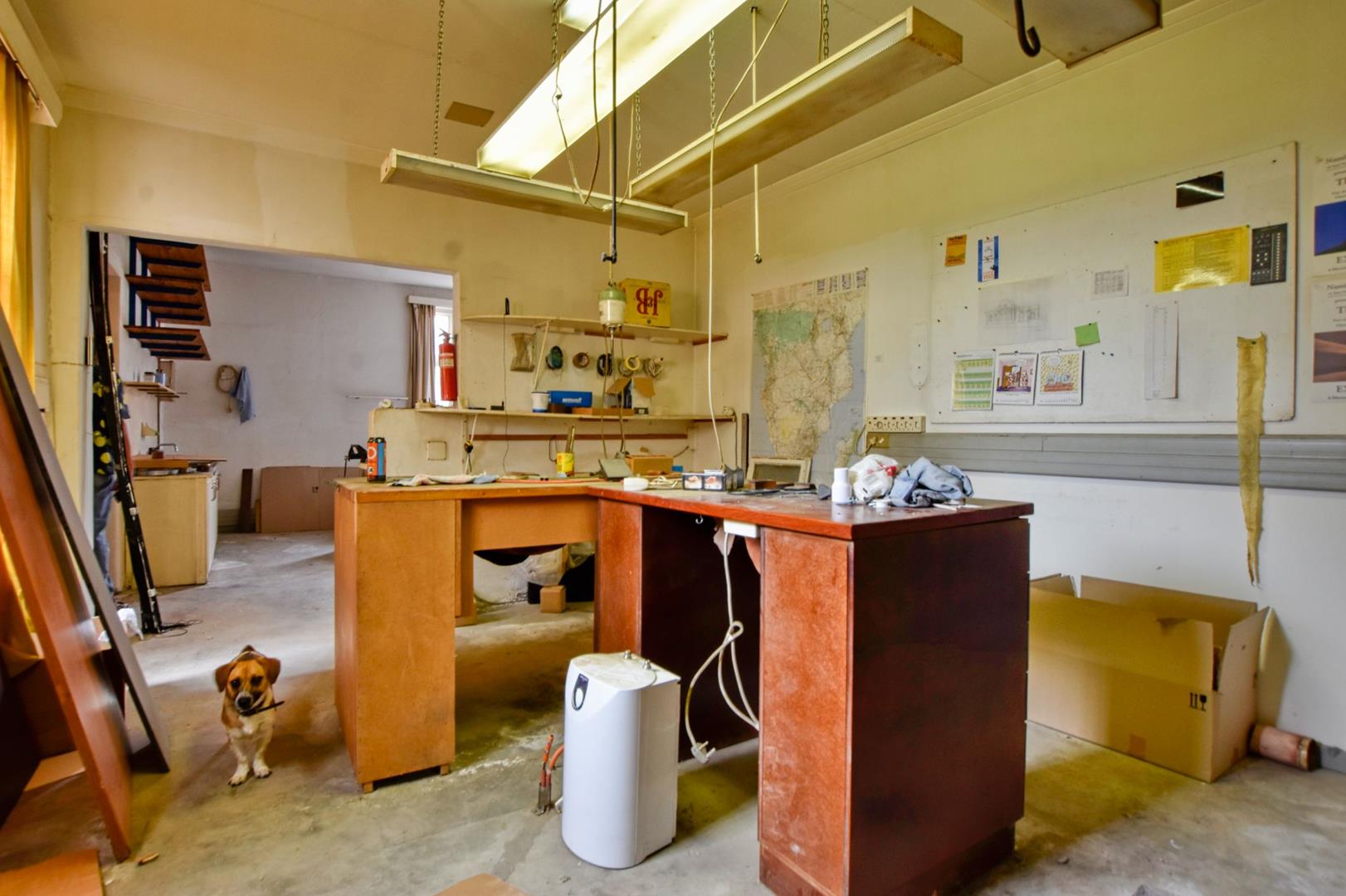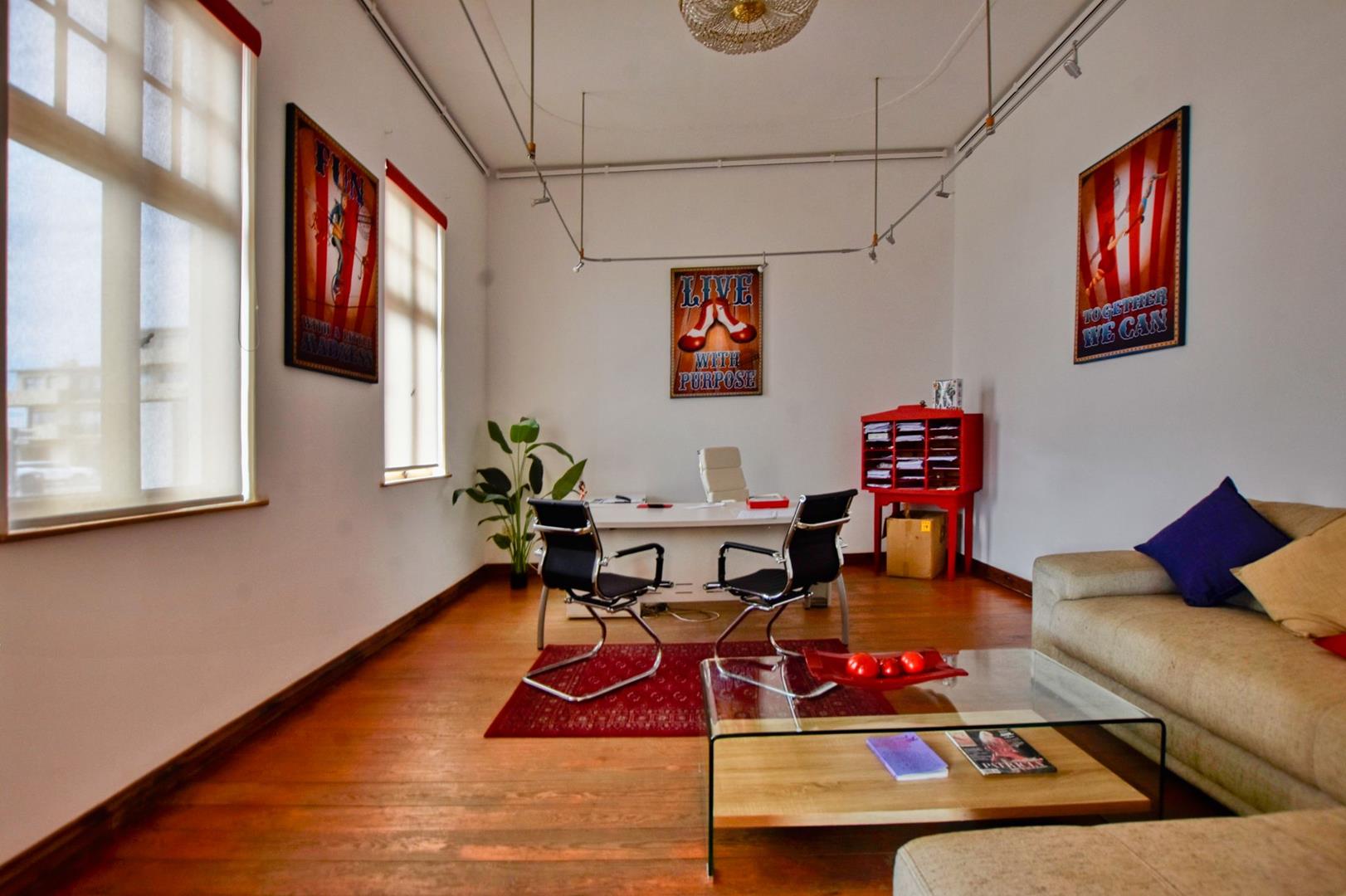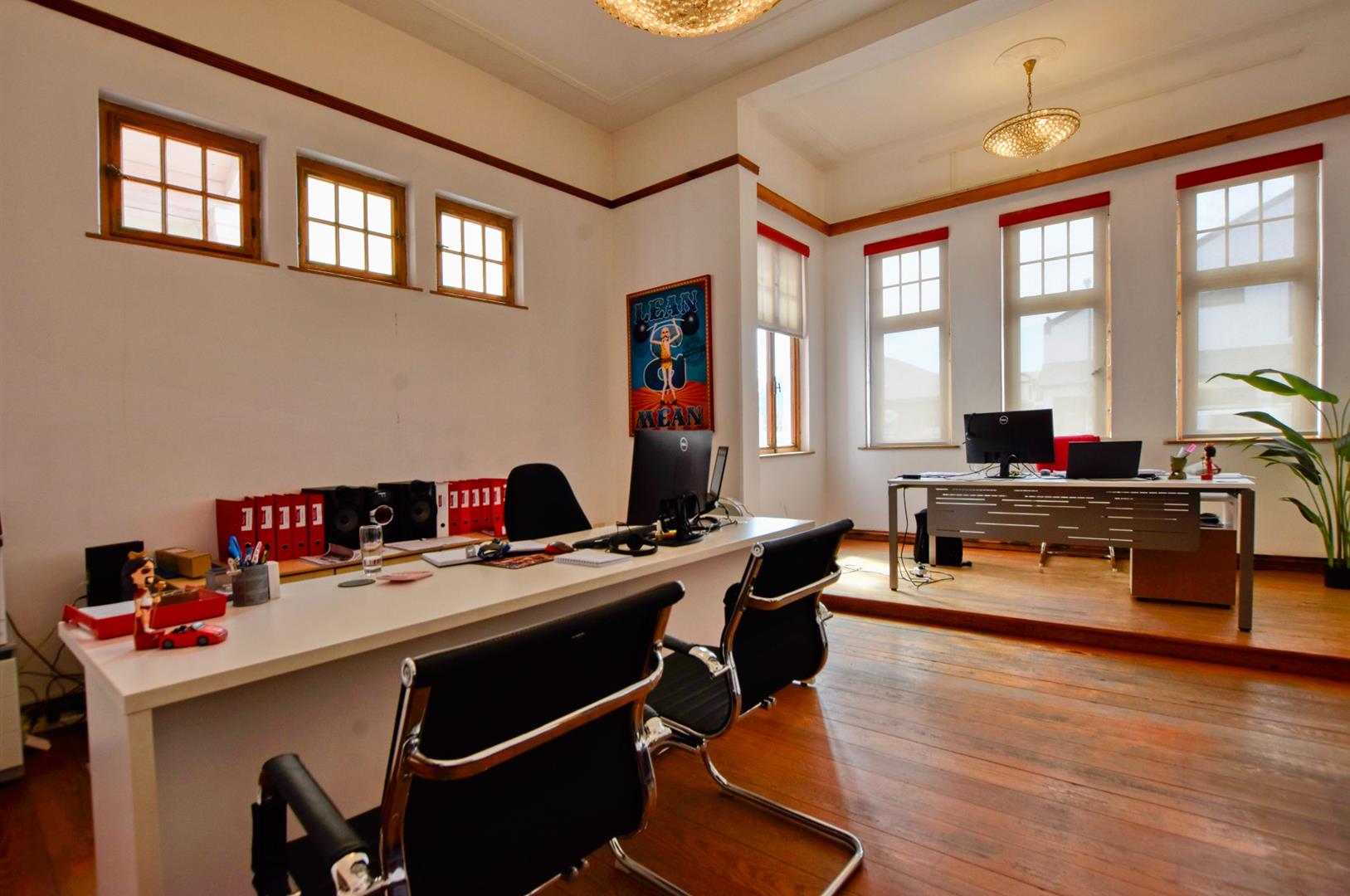 The building comprises : covered entrance stoep, various offices, which could be utilises as studios, offices, strong room, storage facility, workshop areas and polishing room. Situated at the rear of the main building is a self-contained cottage, comprising bedroom, kitchen, passage, and bathroom.