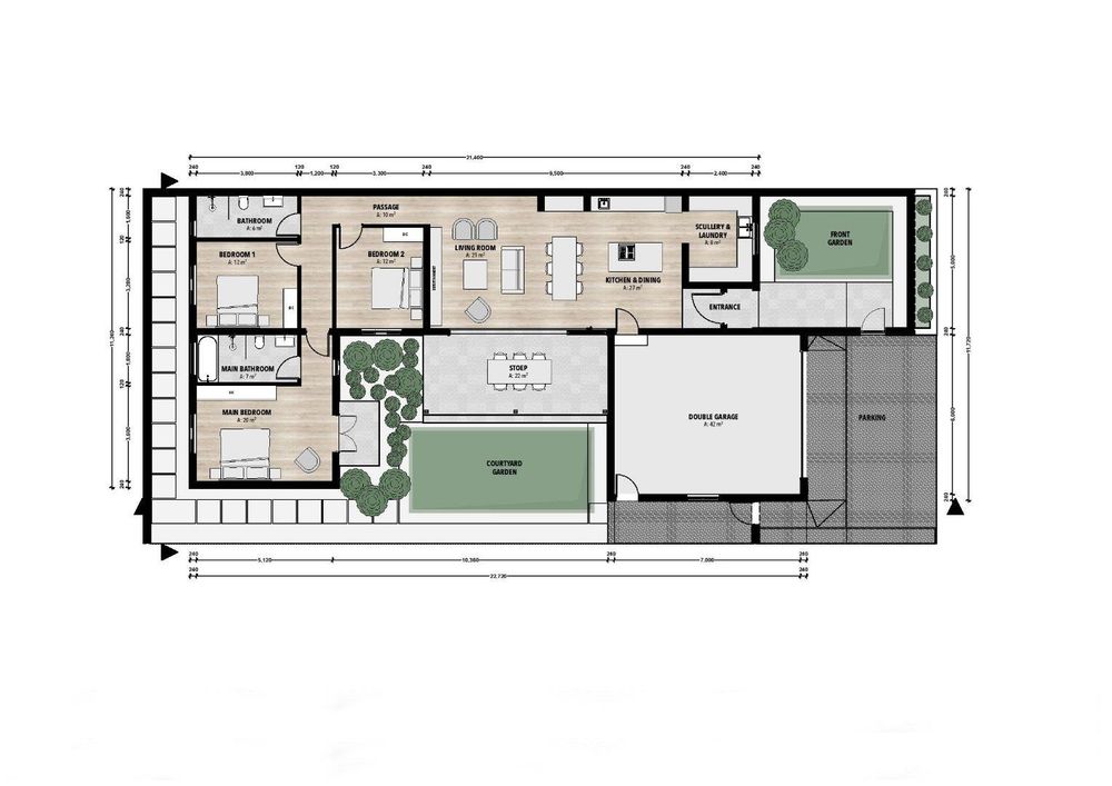 ** Total roofed area: 218.50m2