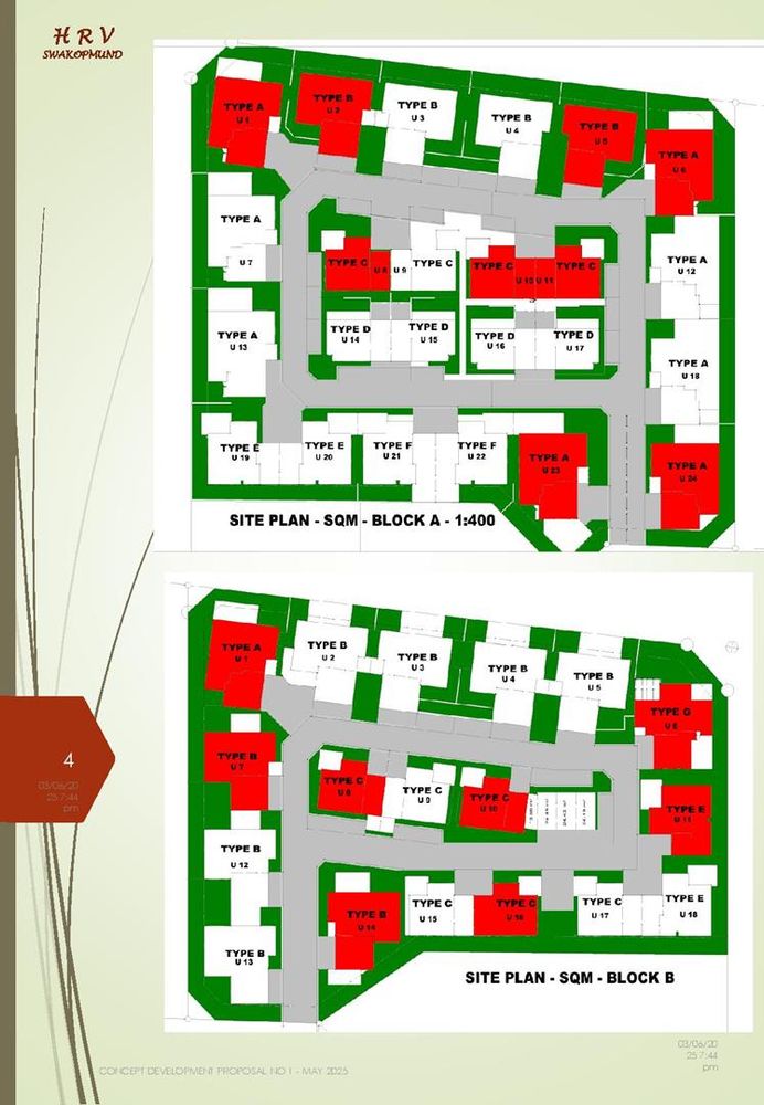 * Full title residential erven, with prices starting from around N$1 500 000. Building plans can then be negotiated (this is the red marking in our aerial image)