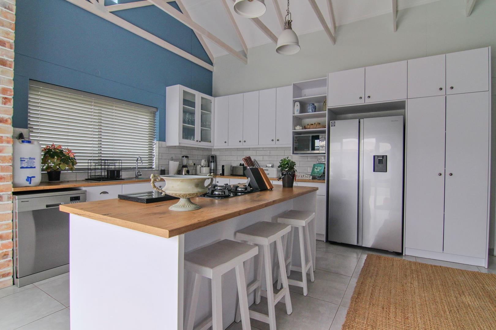 * Kitchen, with island and gas hob, open plan with living area