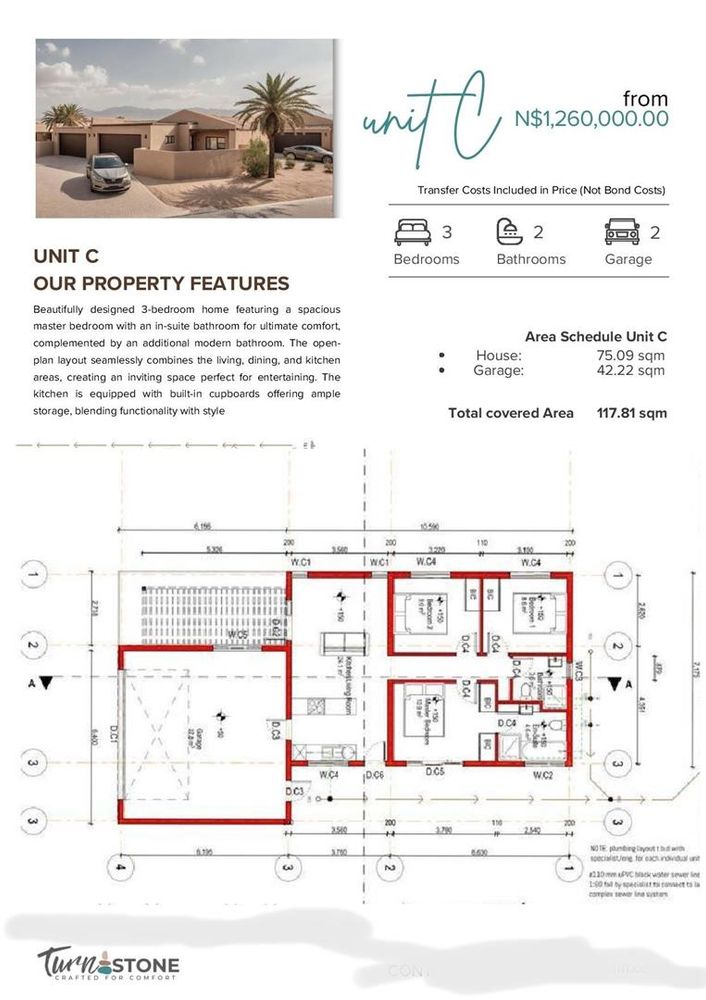 * Unit C: N$1 260 000: 3 Bedr, 2 Bathr, 2 Garages: TOTAL SIZE: 117.81m2